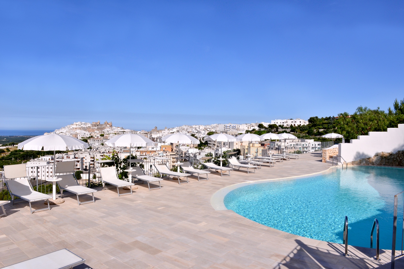 in piscina hai la vista sul mare Adriatico e sulla Città Bianca di Ostuni;