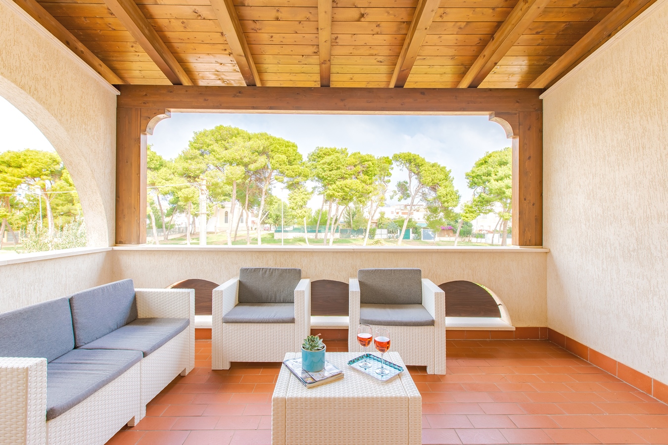 Per mangiare all’aperto ci sono due verande che affacciano sui giardini.