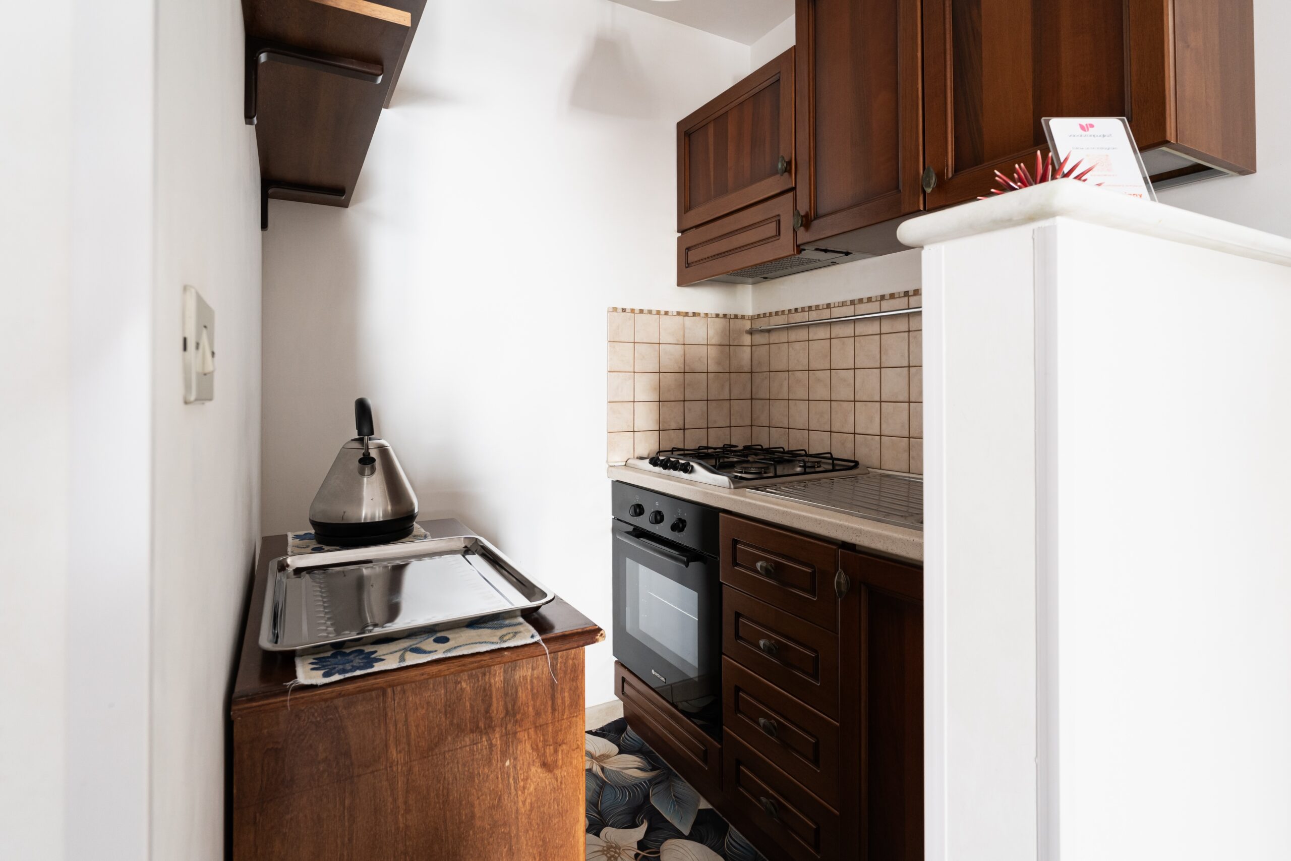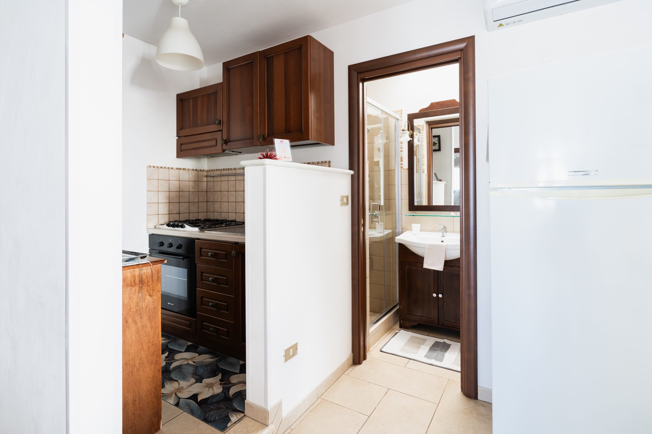 – 1 soggiorno (climatizzato) con angolo cottura e affaccio sulla veranda