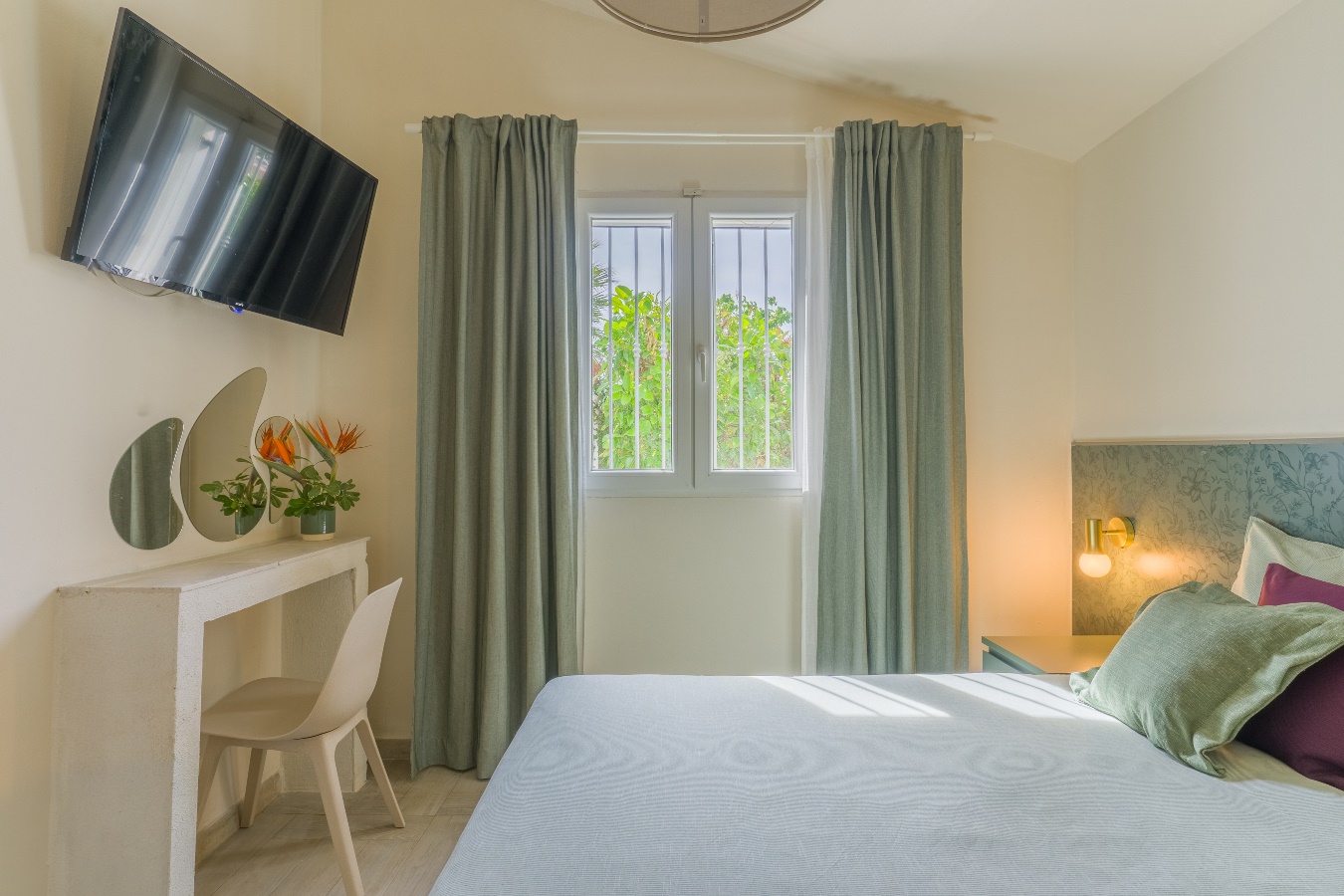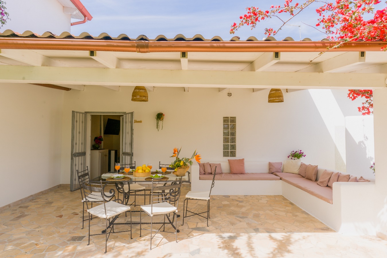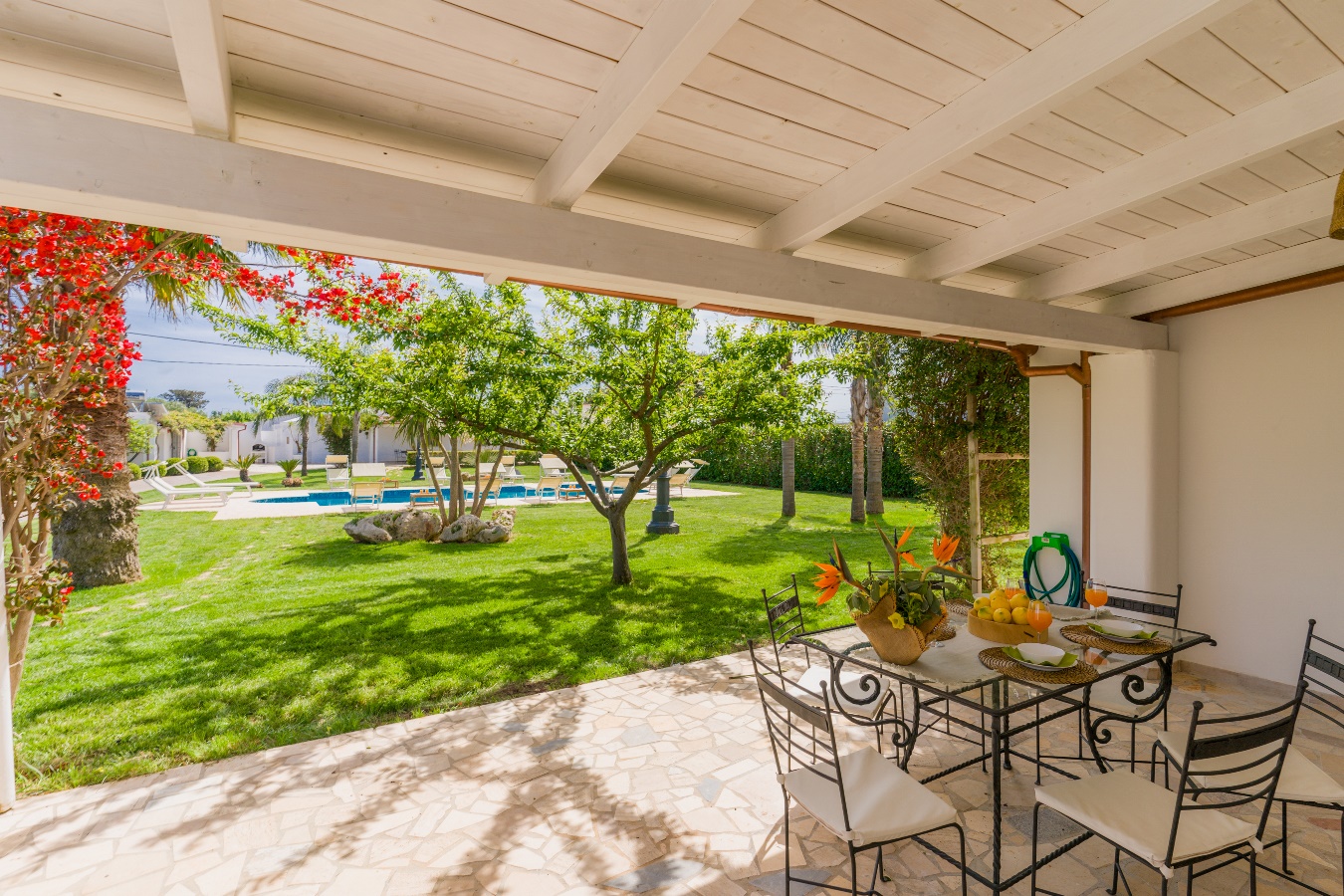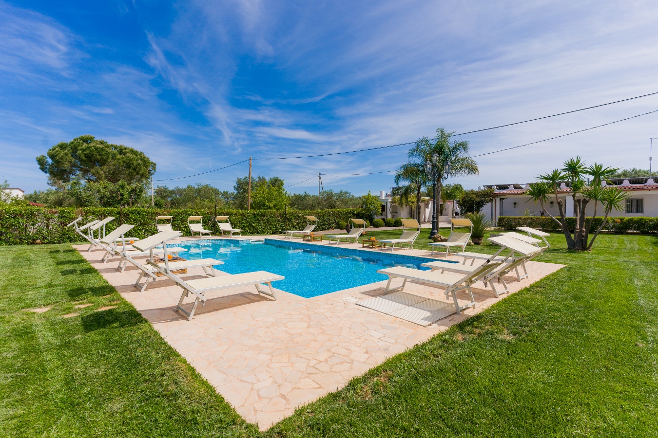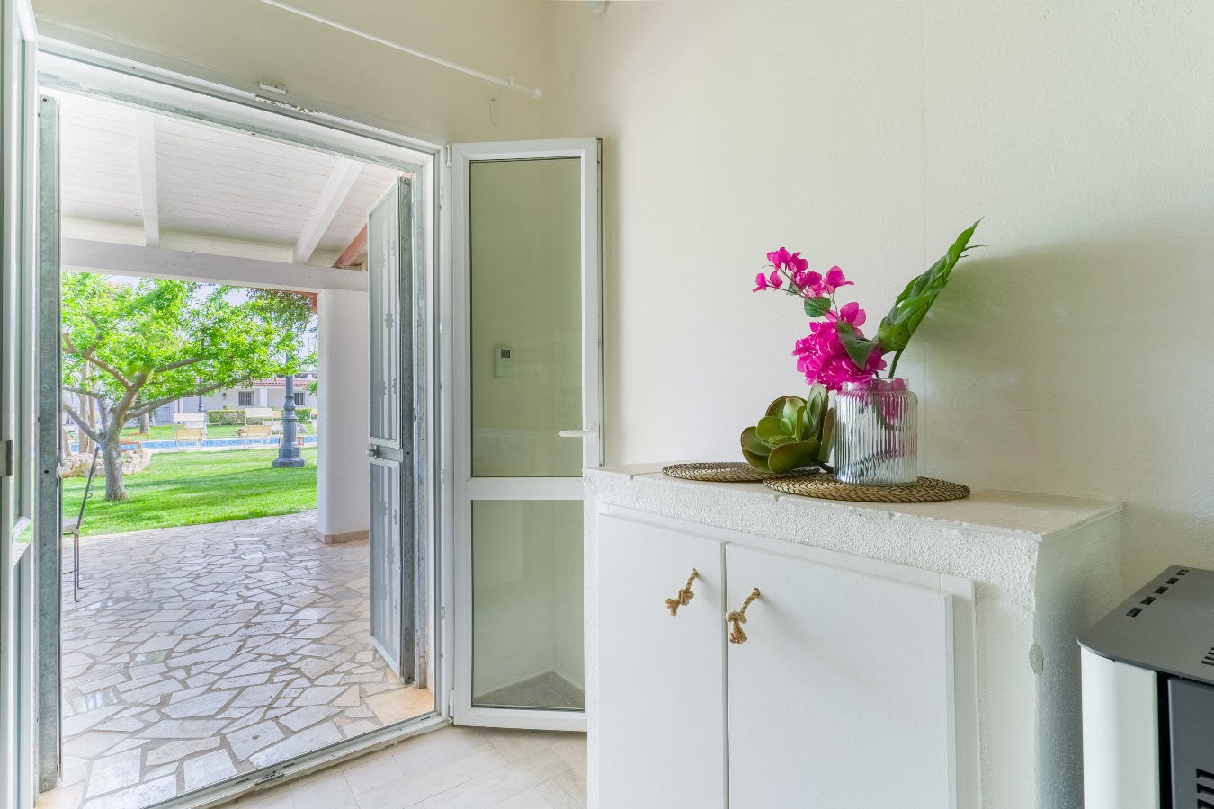 Si trova all’interno di un gruppo di tre case che condividono la piscina ed il giardino.