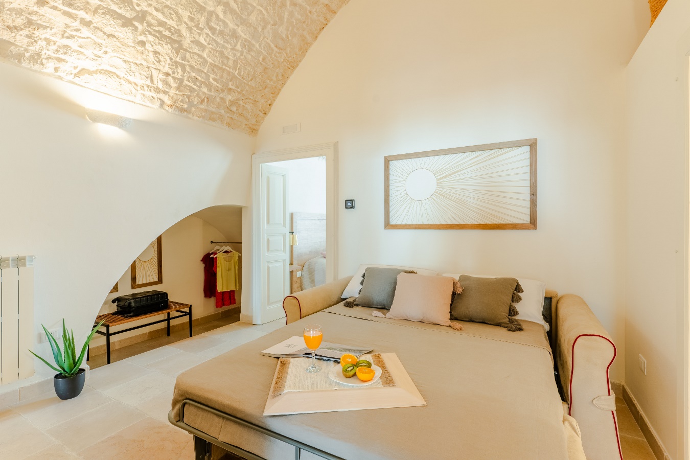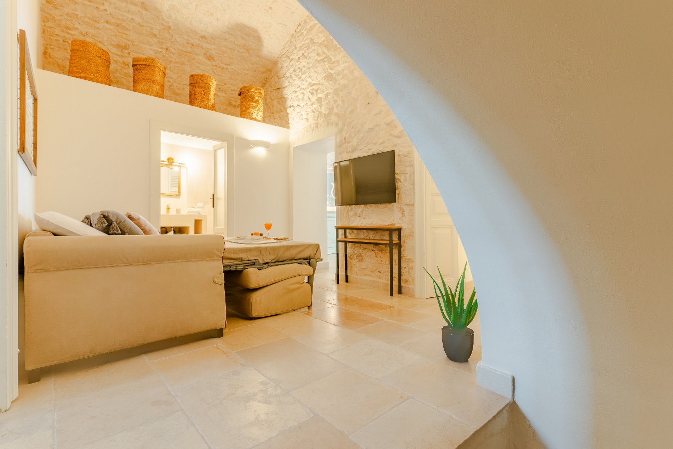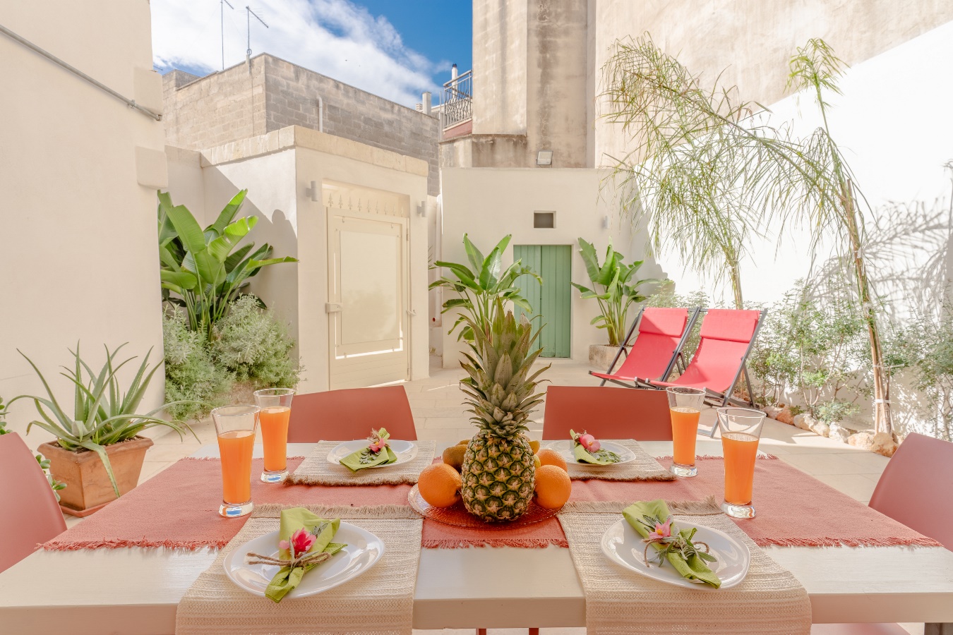 Da questa casa raggiungi a piedi laboratori con piccole botteghe di: pane e dolci di mandorle, formaggi freschi e pasta fresca fatta in casa. Eccellenti masserie con specialità locali sono in campagna a 2 minuti d’auto.