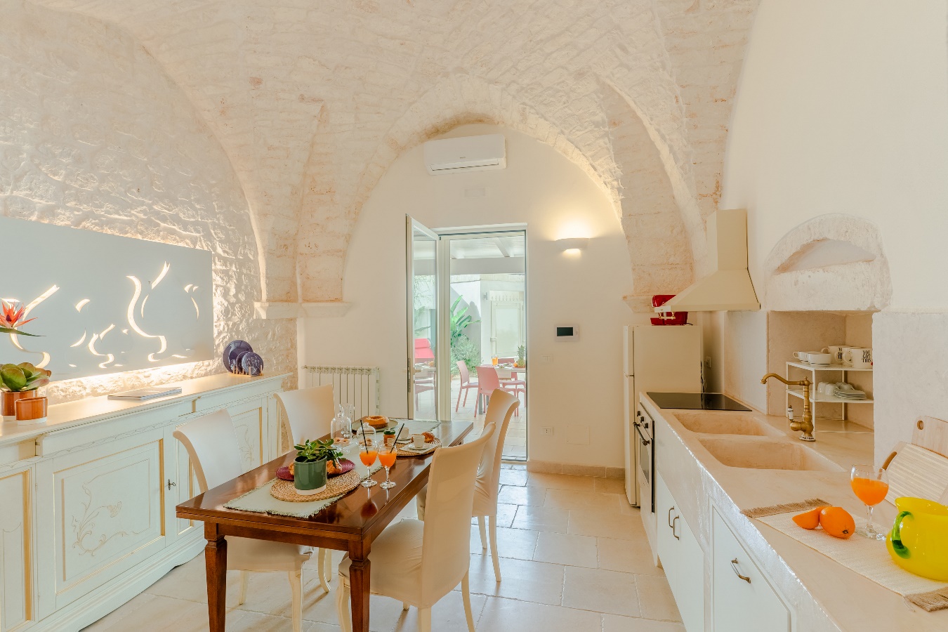 Casa Lea è una affascinante casa tipica del 1600, si trova a Carovigno vicino a Ostuni. Offre un giardino con una grande veranda dove potete godere i pasti all’aperto grazie ad un tavolo da pranzo, salotti e sdraio. Ideale per due coppie di amici grazie a due camere matrimoniali e due bagni con doccia. Godetevi un’atmosfera magica grazie ad elementi architettonici unici come i tetti a volte in pietra locale illuminati da luce calda e soffusa. Sarete a 7 minuti d’auto dalle spiagge sabbiose e a 20 km dalla Riserva di Torre Guaceto, una delle 16 aree marine protette piu belle al mondo. Sarai altrettanto vicino alla Valle D’Itria una delle parti piu affascinanti della Puglia.