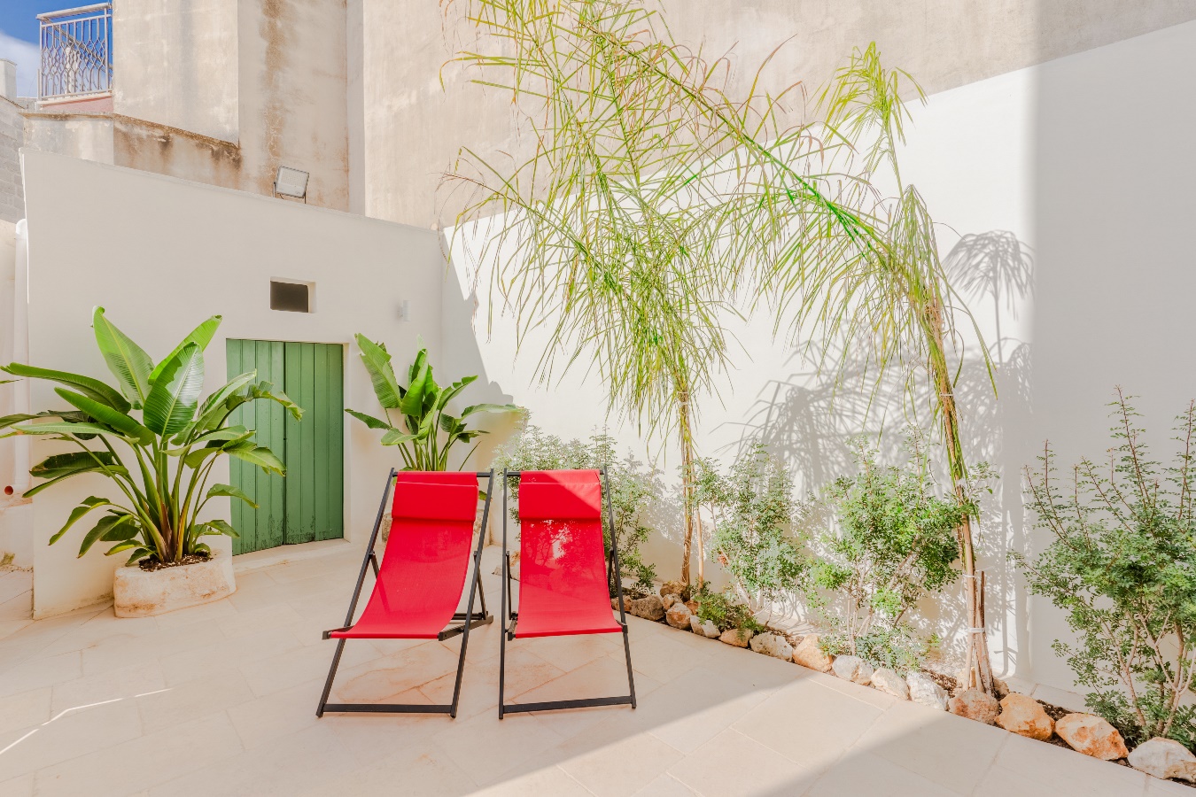 giardino pavimentato, n.1 veranda con tavolo da pranzo, n.2 sdraio, salotti.