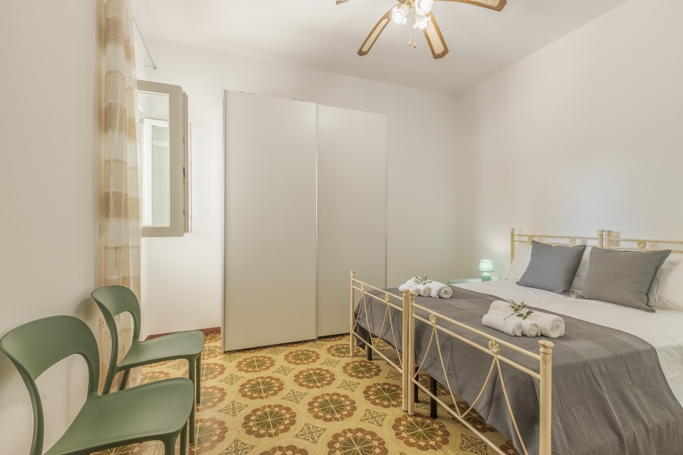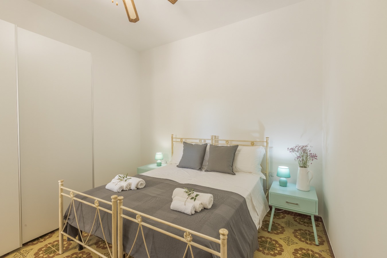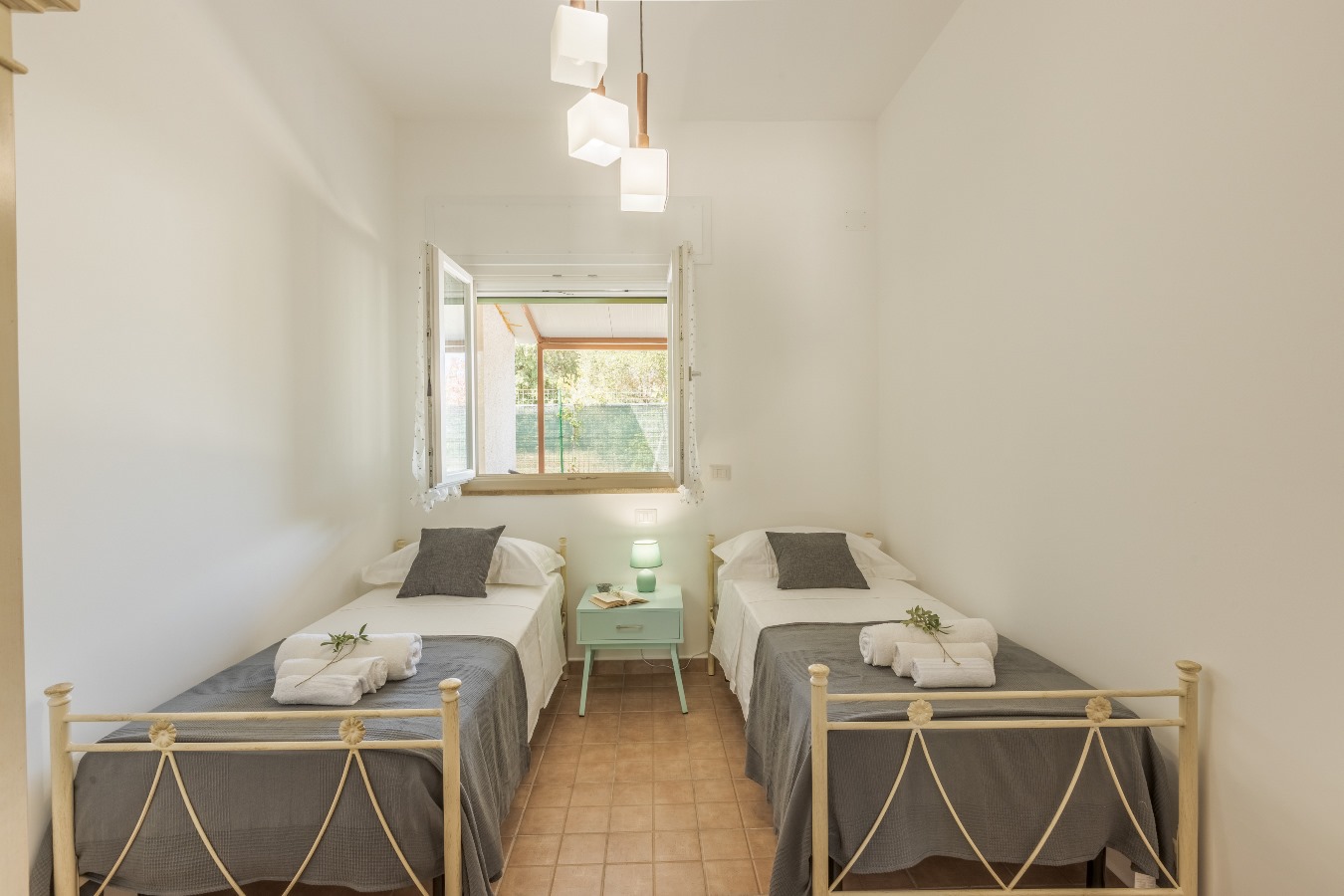 2 camere da letto: 1 camera matrimoniale, 1 camera con due letti singoli unibili, 1 bagno con doccia, 1 soggiorno/pranzo con divano letto 140×2,00 m dove possono dormire due bambini.
