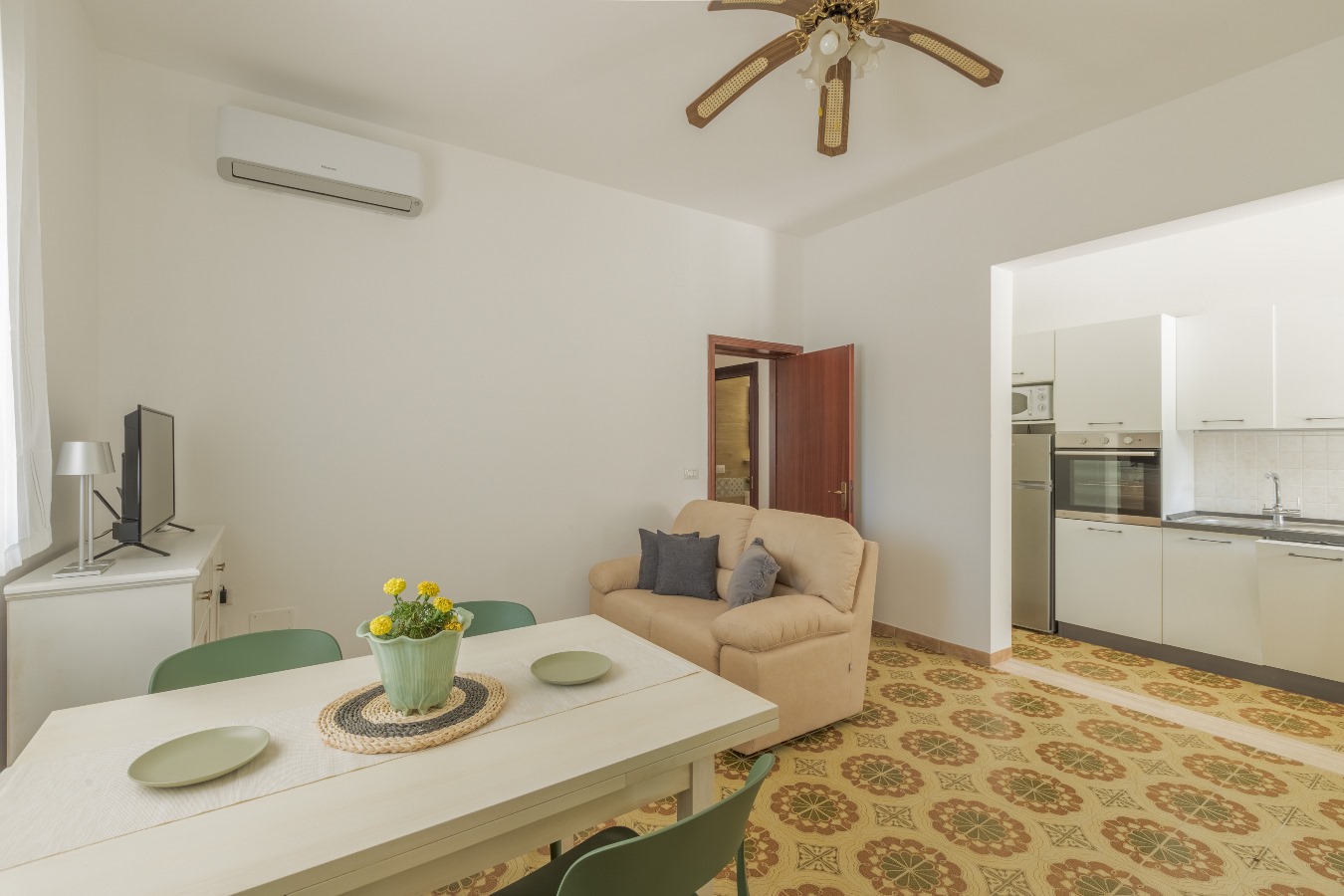 Esterno: veranda con tavolo da pranzo ad uso esclusivo. Alberi da frutto: albicocche, mandorle, fichi, olive, pere e mele, approfittatene per arricchire le vostre colazioni.