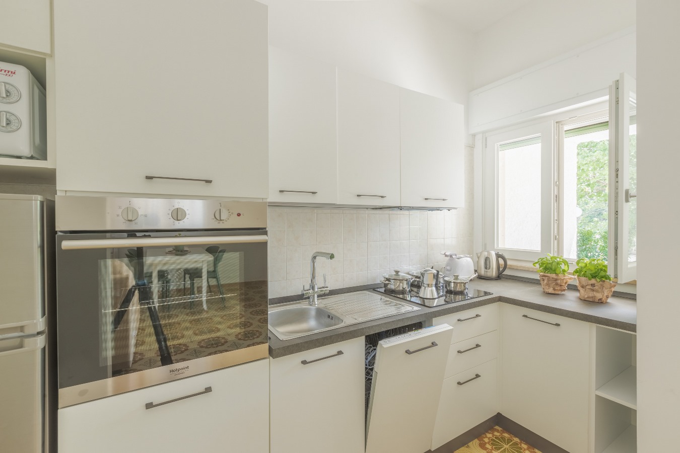 giardino, piscina, doccia esterna dopo spiaggia, uso lavatrice.