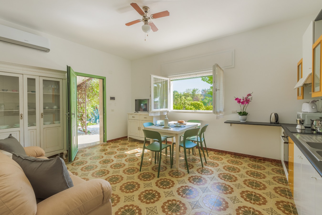 Esterno: veranda con tavolo da pranzo ad uso esclusivo, posto auto. Alberi da frutto: albicocche, mandorle, fichi, olive, pere e mele, approfittatene per arricchire le vostre colazioni.