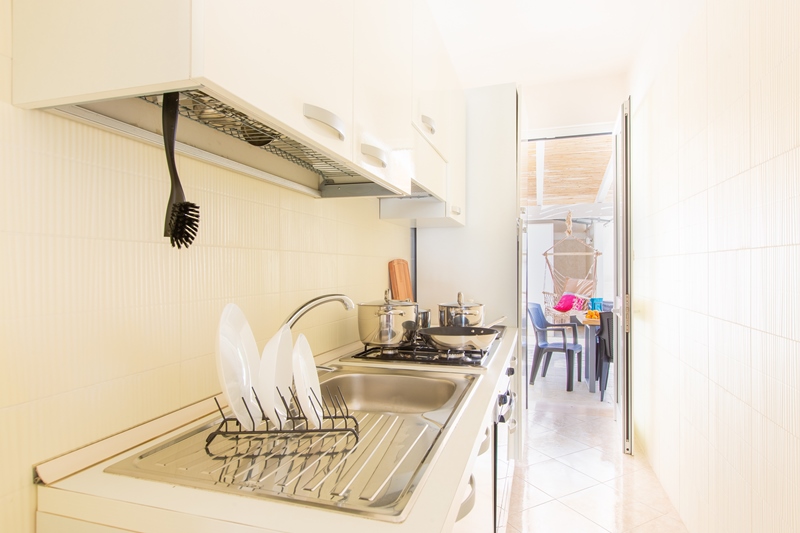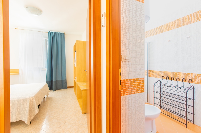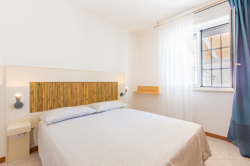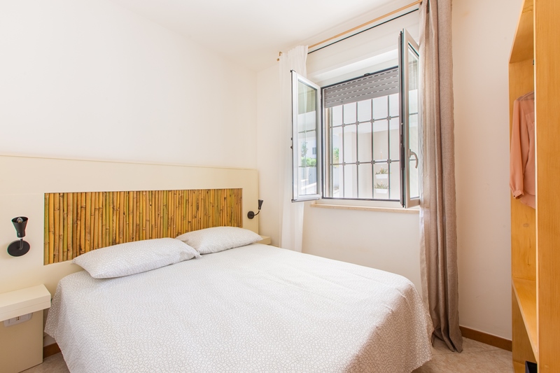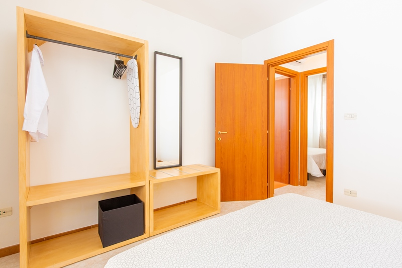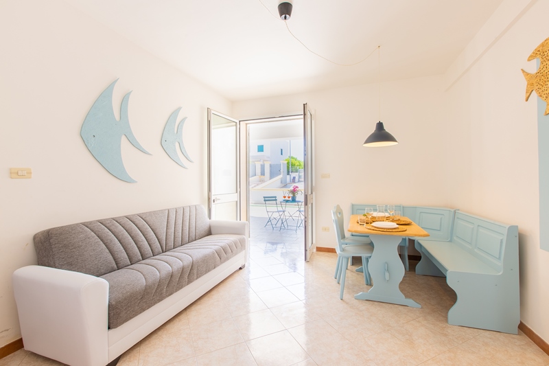 un soggiorno con divano letto da 1.10 mt comodo per due bambini, un disimpegno con un climatizzatore, un angolo cottura, n.2 camere matrimoniali, n.1 bagno con doccia 60×110 cm.