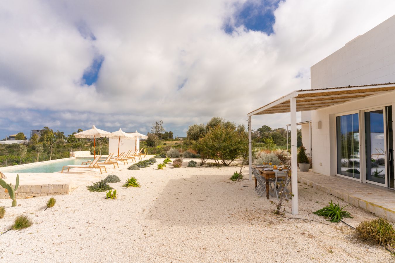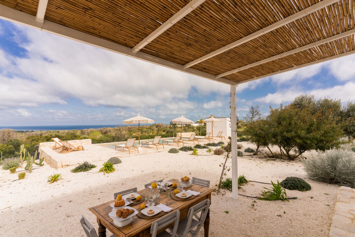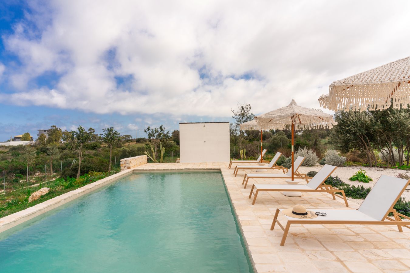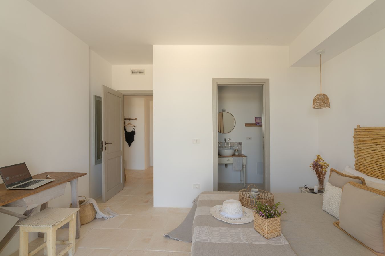 È una dimora da abitare con lentezza: un tuffo all’alba, un libro nell’ombra più fresca, un aperitivo sospeso tra cielo e mare quando la luce si fa seta.