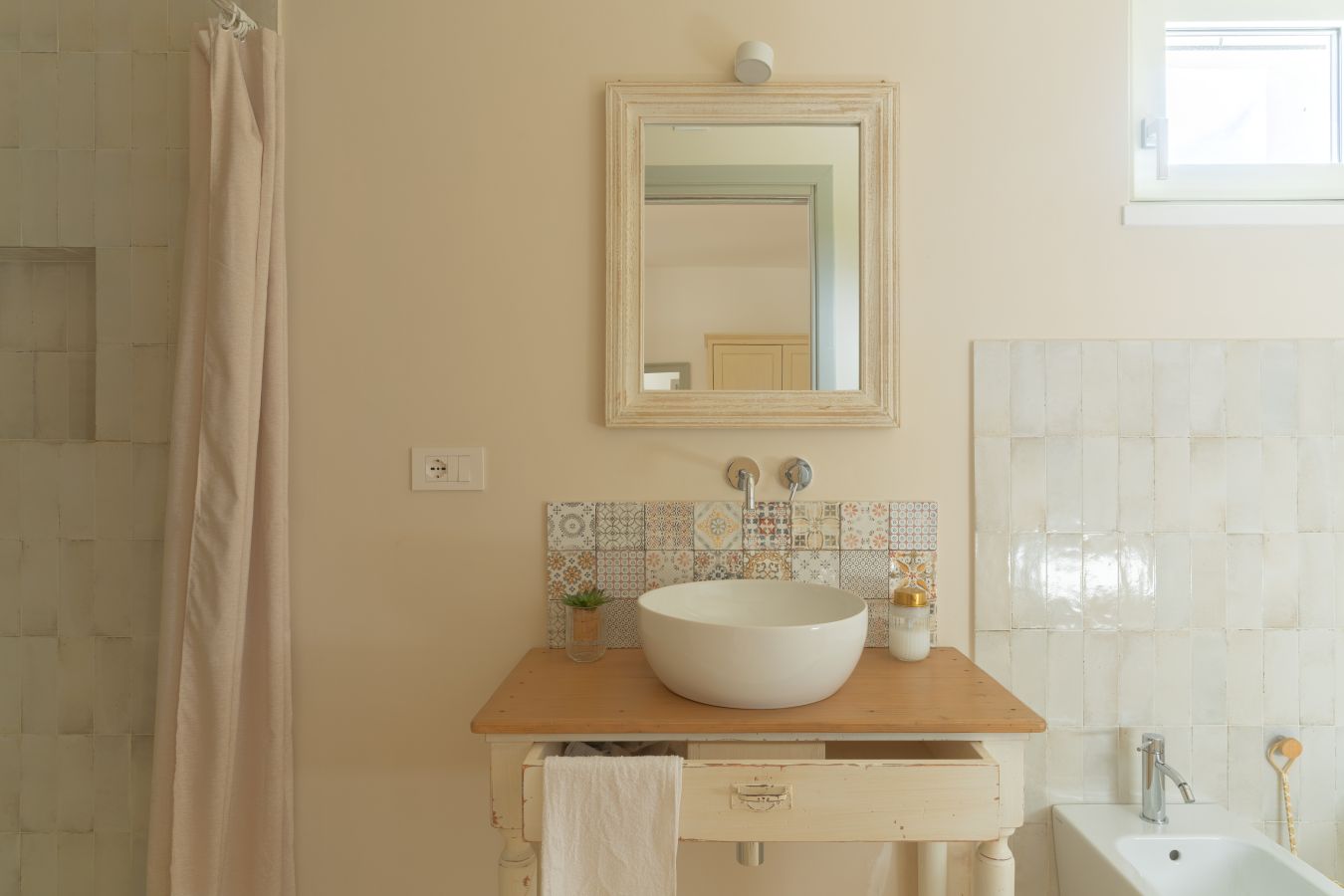 Gli interni sono una dichiarazione di stile: legni vissuti, pezzi d’epoca recuperati e reinterpretati, dettagli artigianali dialogano con linee contemporanee essenziali.