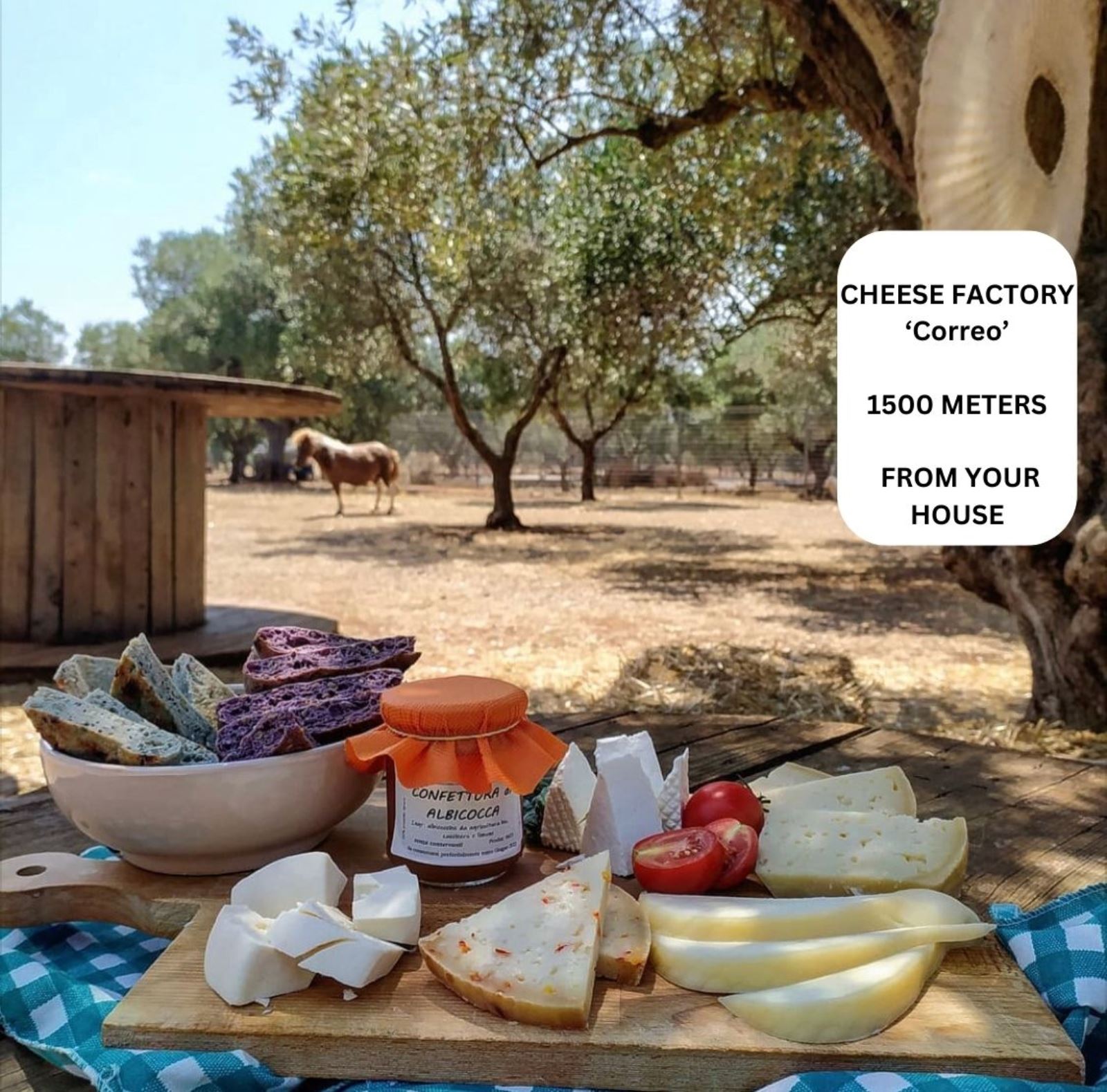 a 1500 mt ‘Masseria Correo’ vendita di formaggi freschi, pasta fatta in casa, carne.
