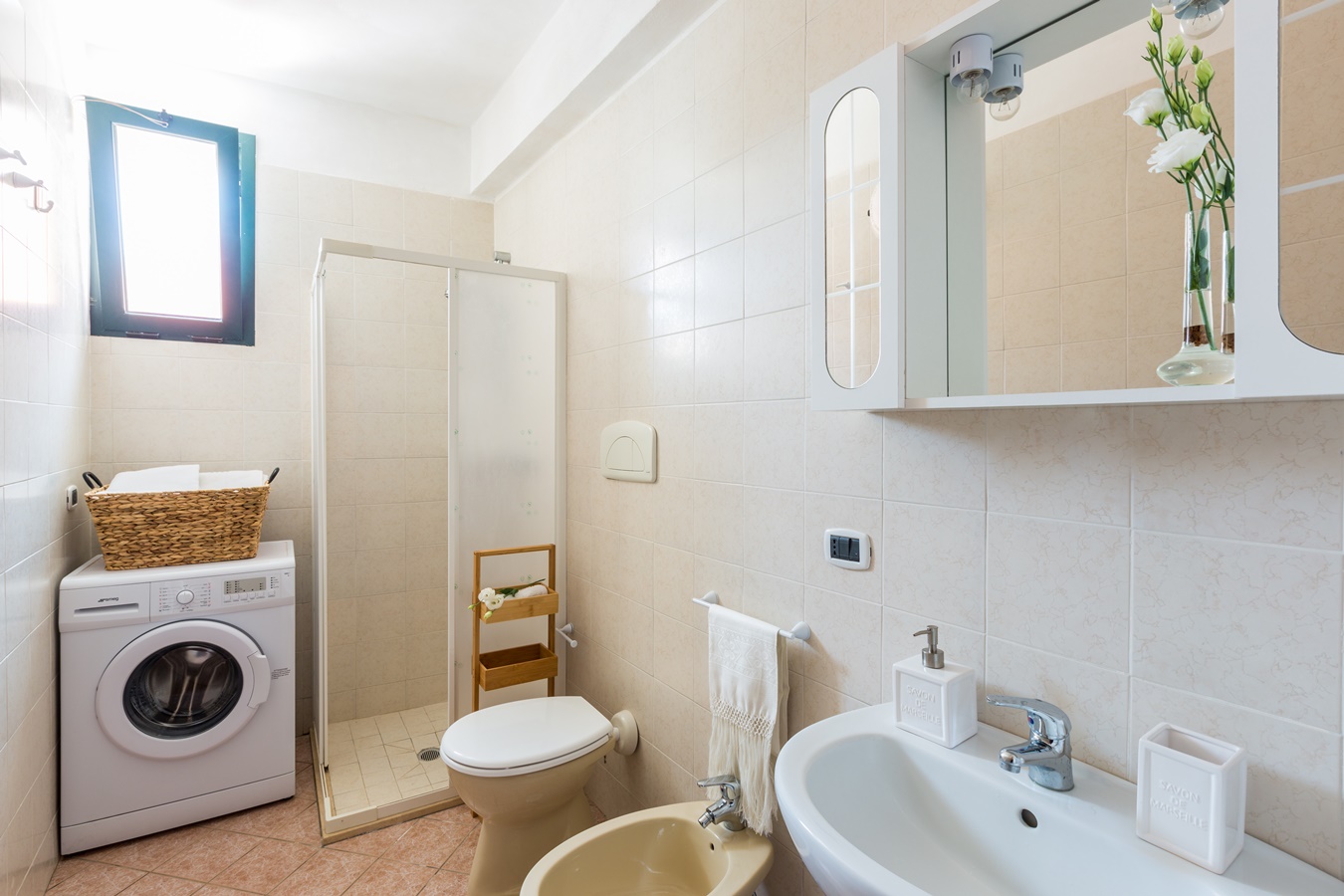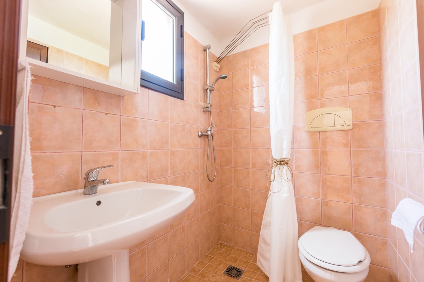 Il bagno in camera al I piano ha una doccia di ridotte dimensioni.