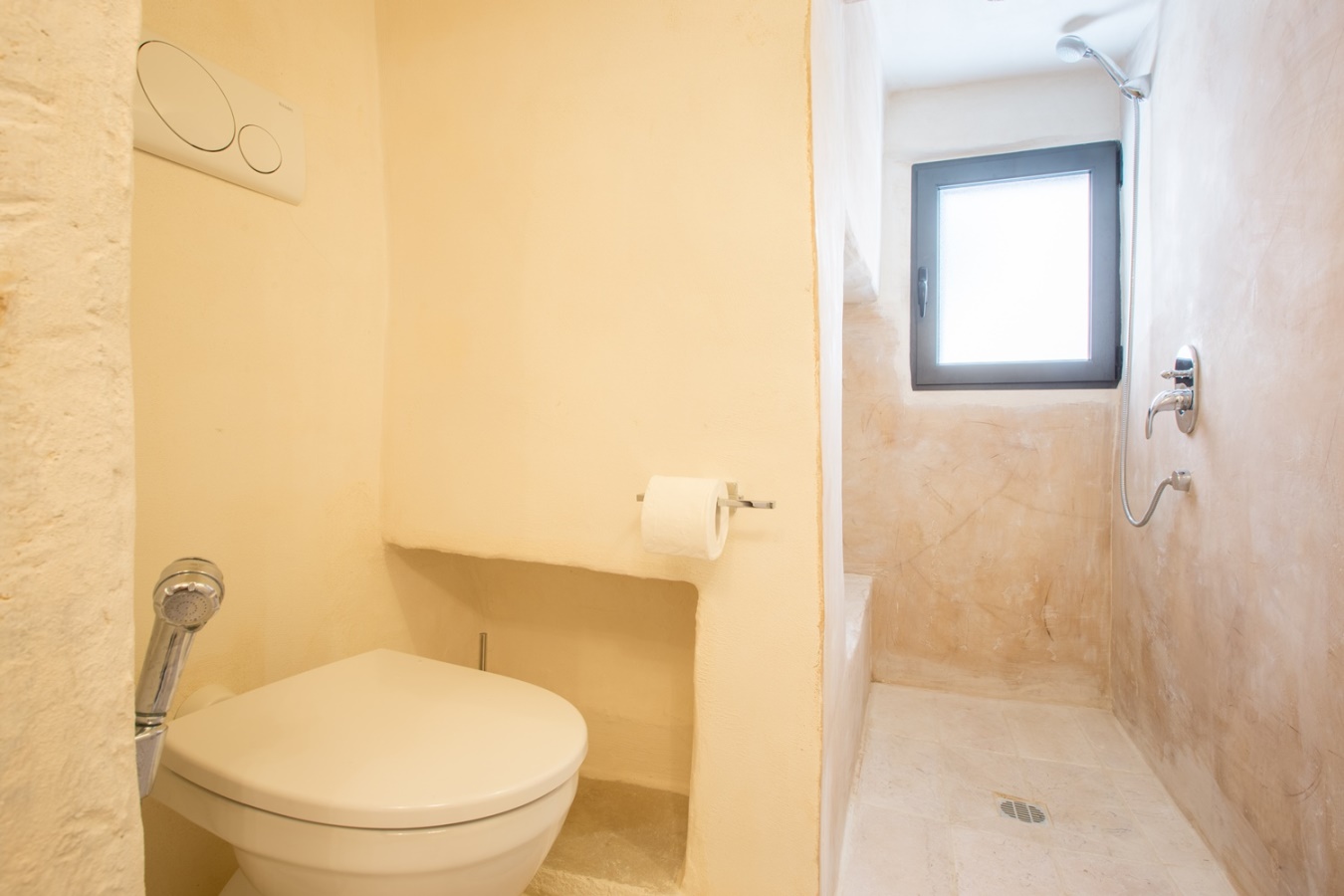 sei in una casa arredata con i colori della sabbia e questo favorisce la quiete del vostro soggiorno;