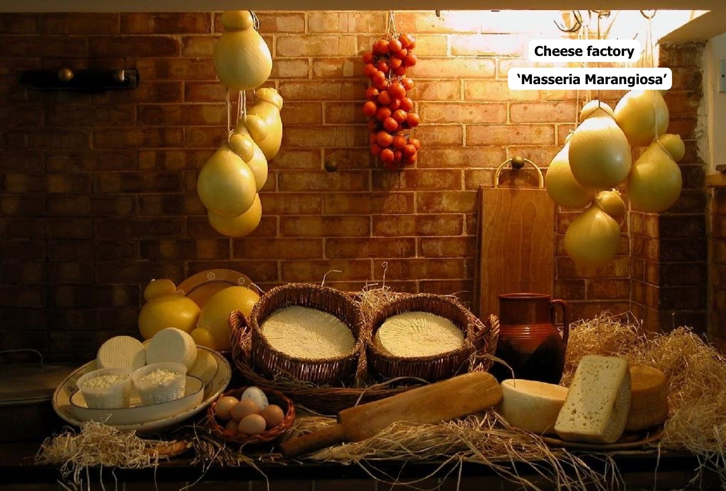 Il primo centro abitato è S. Vito dei Normanni a 8 km, conosciuto per il Castello Dentice di Frasso. Trattorie convenzionate: “Nonna Mena” inserita nella Guida Slow Food cucina tipica a conduzione famigliare e “Xfood” il primo ristorante Sociale della Puglia gestito da disabili.