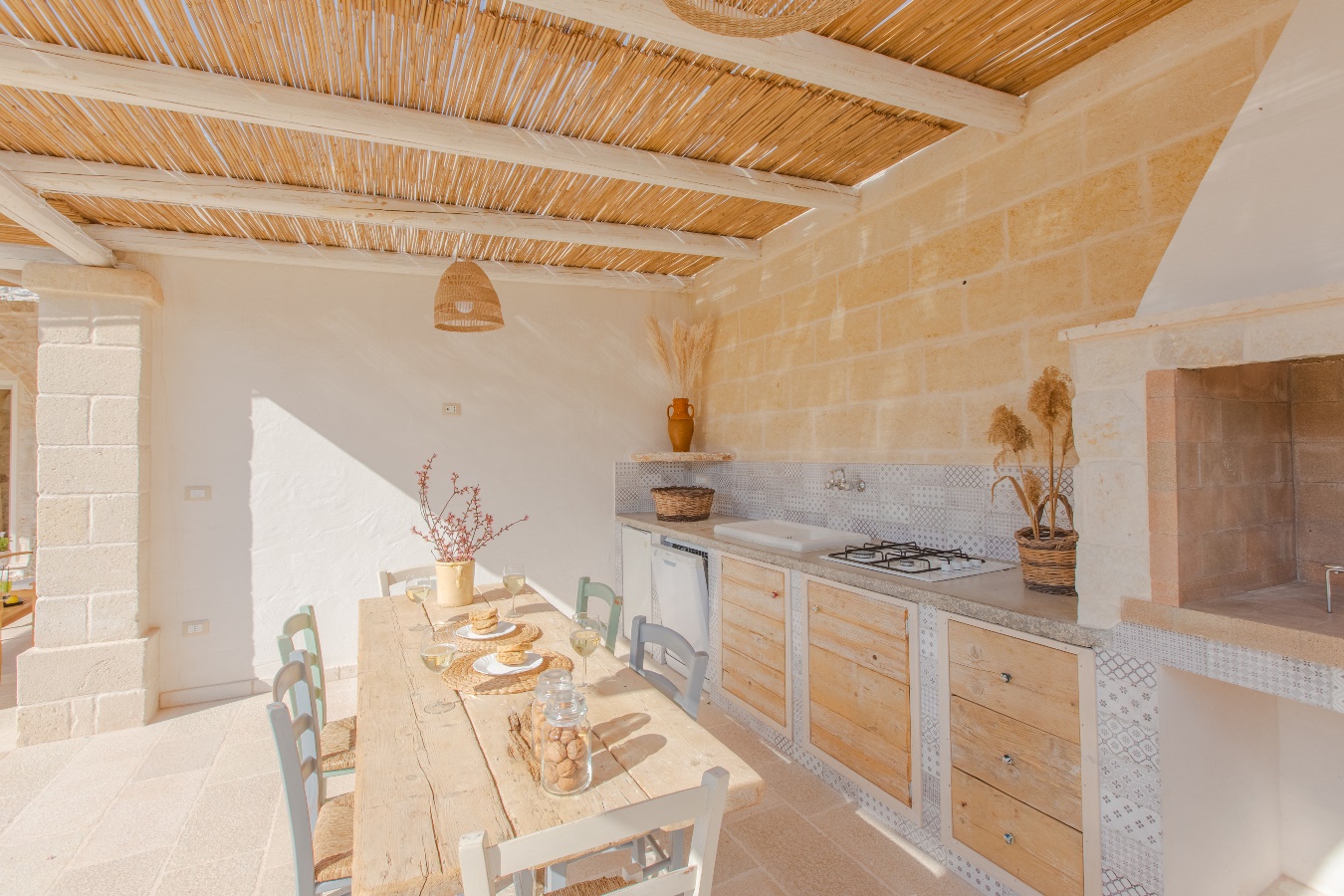 Un’esperienza locale in Alto Salento, Lamia del Vespro gode di una vista spettacolare al calar del tramonto. Sarai a soli dieci minuti d’auto dalla vivace Ostuni conosciuta come la ‘Città Bianca’. Una gemma nascosta che unisce la tradizione di una lamia antica ai comfort di una villa moderna. Puo’ ospitare sei persone in tre camere da letto ed è posizionata entro 20 km dalla Riserva di Torre Guaceto una delle 16 aree marine protette piu’ belle al mondo. Approfitta della cucina all’aperto per preparare pasti con prodotti locali freschi e genuini. C’è anche la comodità di negozi alimentari a 3000 m. E quando cala la notte ogni angolo all’aperto è straordinariamente illuminato da luce calda e soffusa. Questa eccezionale villa è il luogo ideale per riunirsi con la famiglia e gli amici.