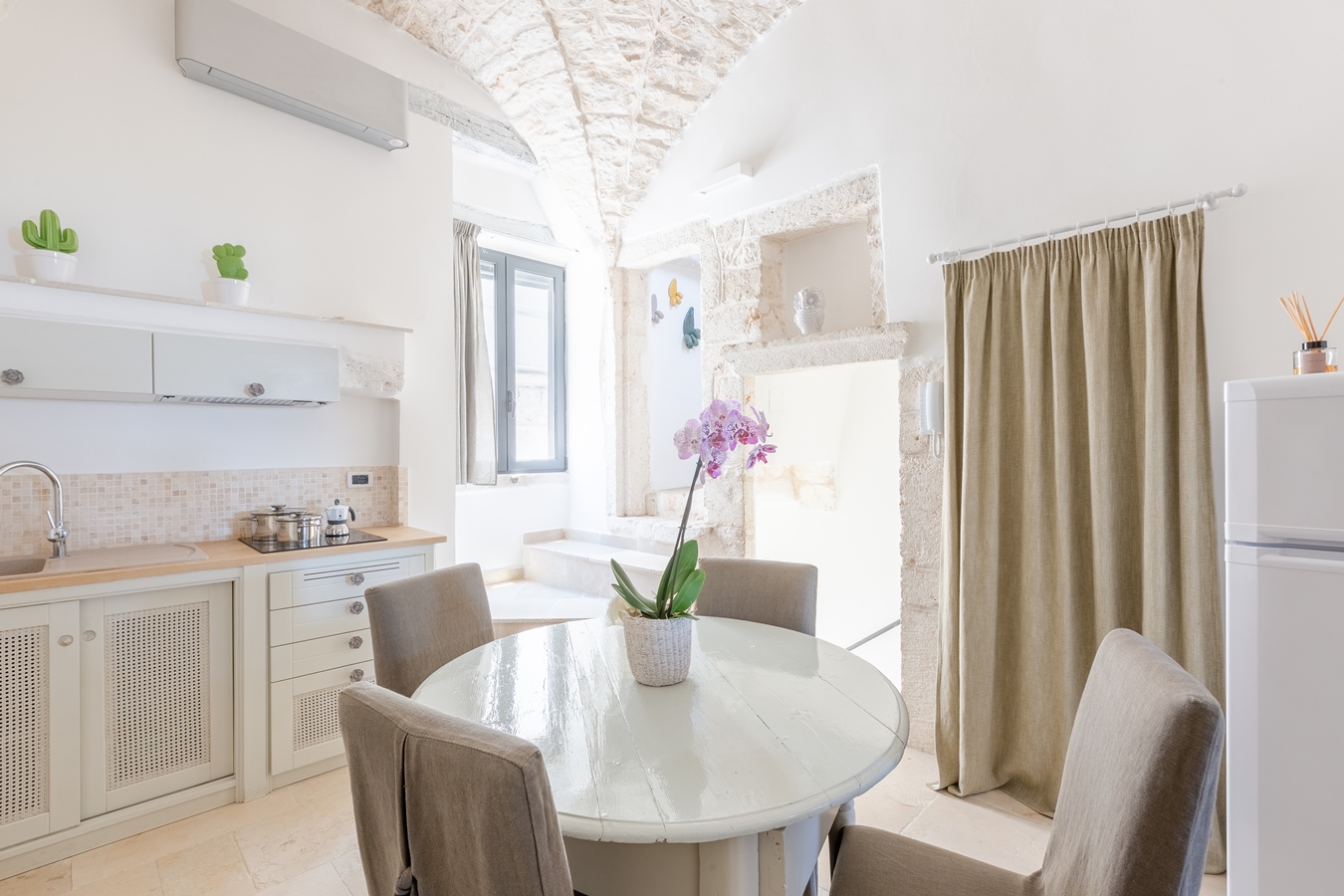 Romeo e Giulietta è un piccolo gioiello a Ostuni vicino Alberobello, la famosa città dei trulli. E’ la destinazione ideale per una coppia in vacanza o una famiglia piccola. Dalla sua terrazza la vista del mare è da togliere il fiato. Quattro posti letto, una cucina attrezzata e due terrazze panoramiche. Troverai il parcheggio, un ristorante e una bottega del pane entro 200 m. E quando vuoi esplorare la costa raggiungerai spiagge splendide entro otto minuti d’auto. Sarai a soli 150 m da “Borgo Antico Bistrot” tra i posti più panoramici per un indimenticabile aperitivo con prodotti pugliesi. Romeo e Giulietta si trova nella posizione ideale per esplorare tutte le attrazioni della Valle D’Itria.