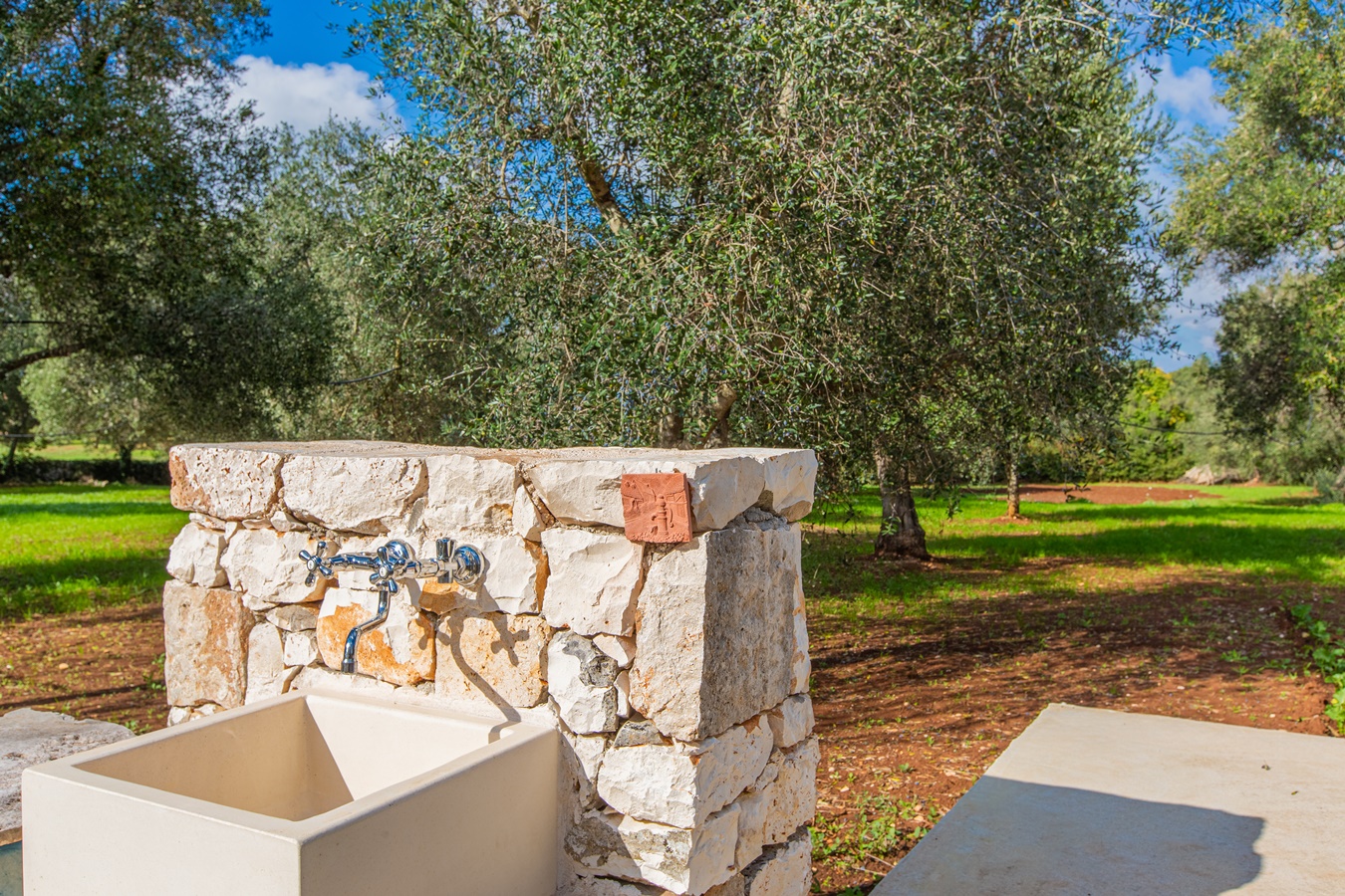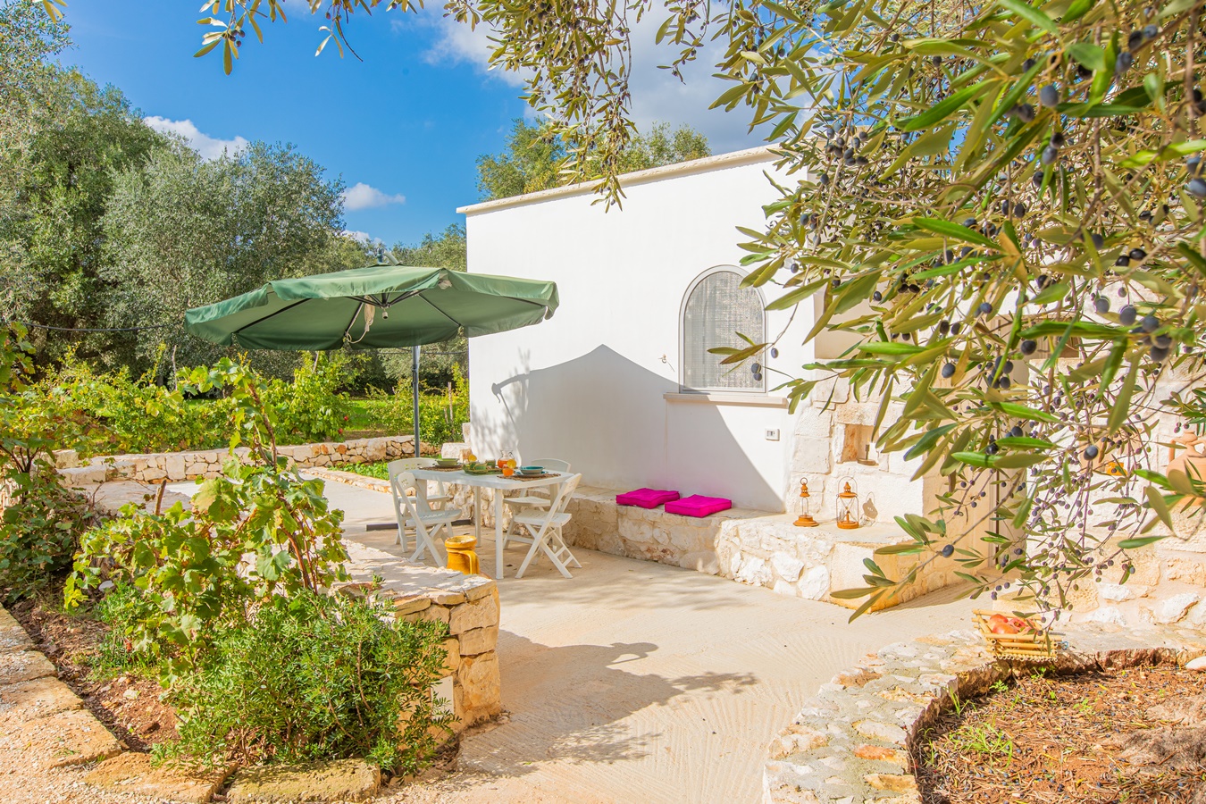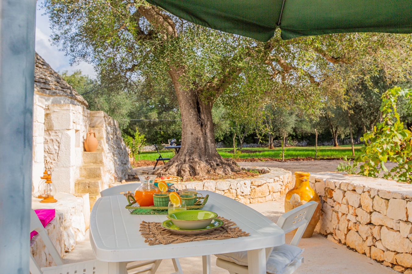 questo trullo è adatto a gruppi di amici in vacanza insieme in quanto, separata dalla casa principale, a 100 m, c’è un trullo indipendente con cinque posti letto.