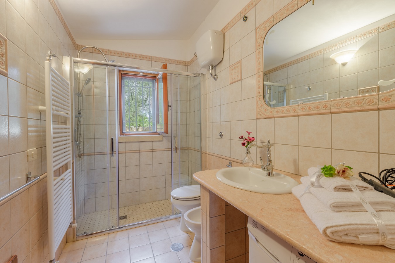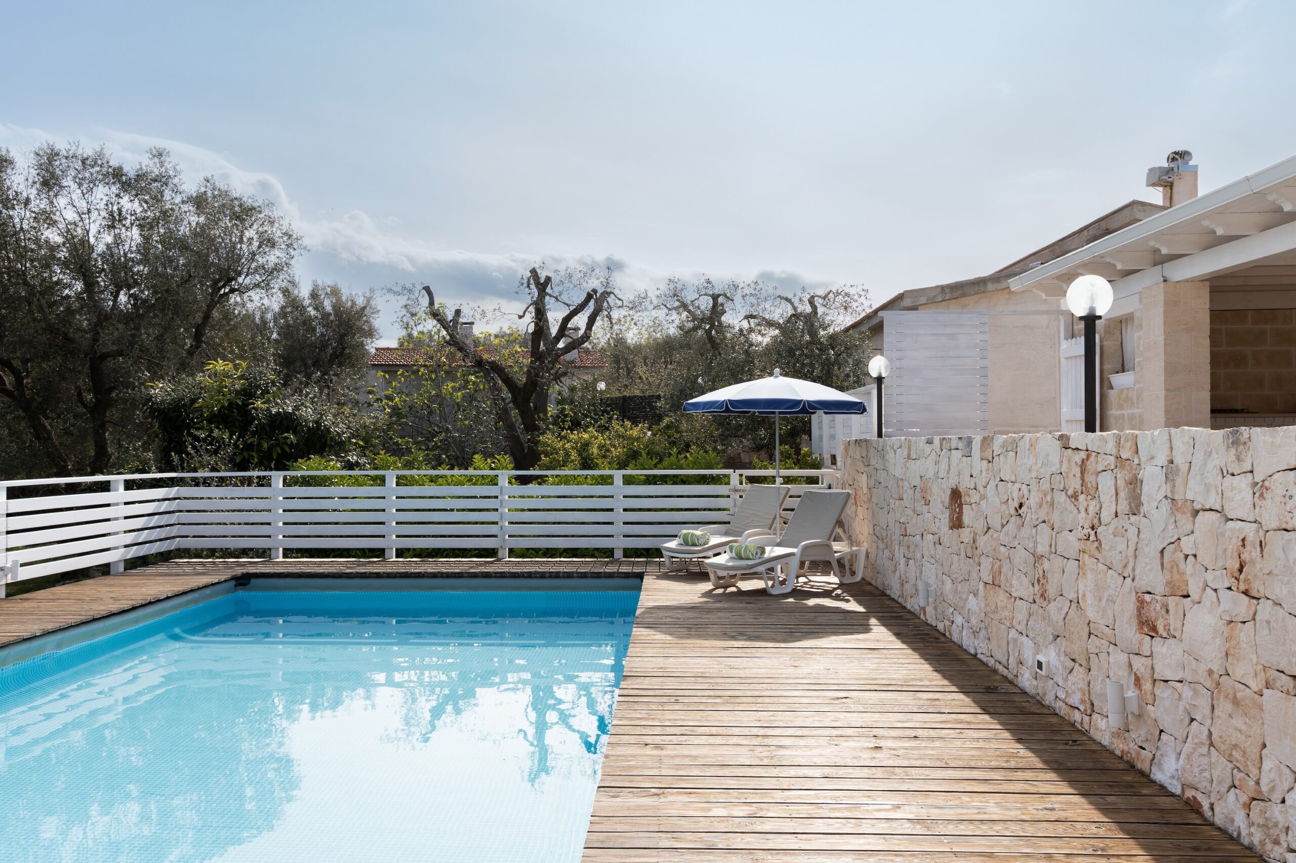 hai tante comodità all’aperto: una veranda fronte piscina, una doccia dopo spiaggia, un barbecue in muratura;