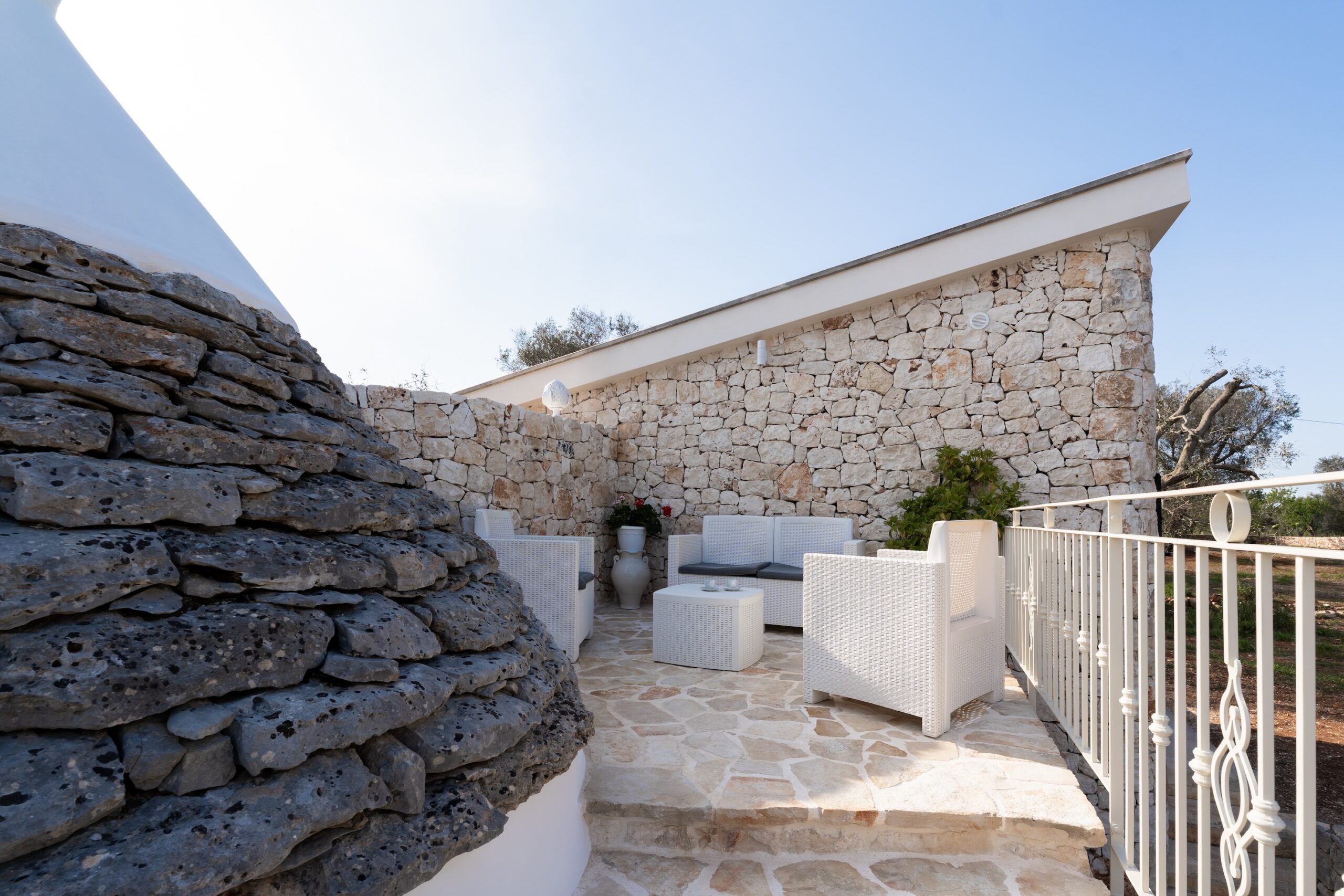 E’ un trullo con ingresso privato e spazi privati e riservati.