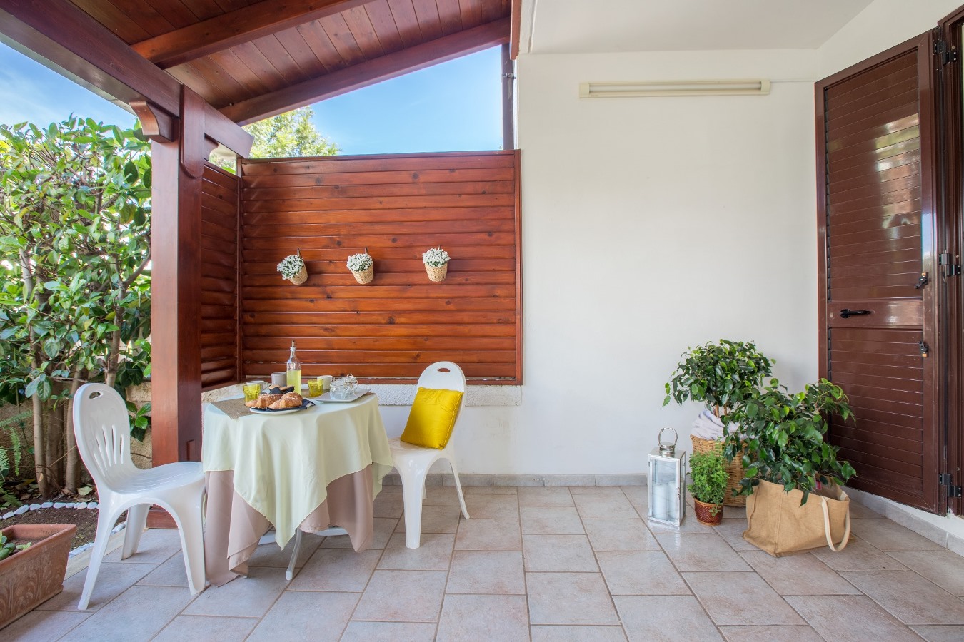 La villa ha un patio in legno attrezzato per mangiare all’aperto con salotti da lettura ed una seconda veranda anteriore attrezzata con vista giardino. Entrambe le verande sono ampie 40 mq.