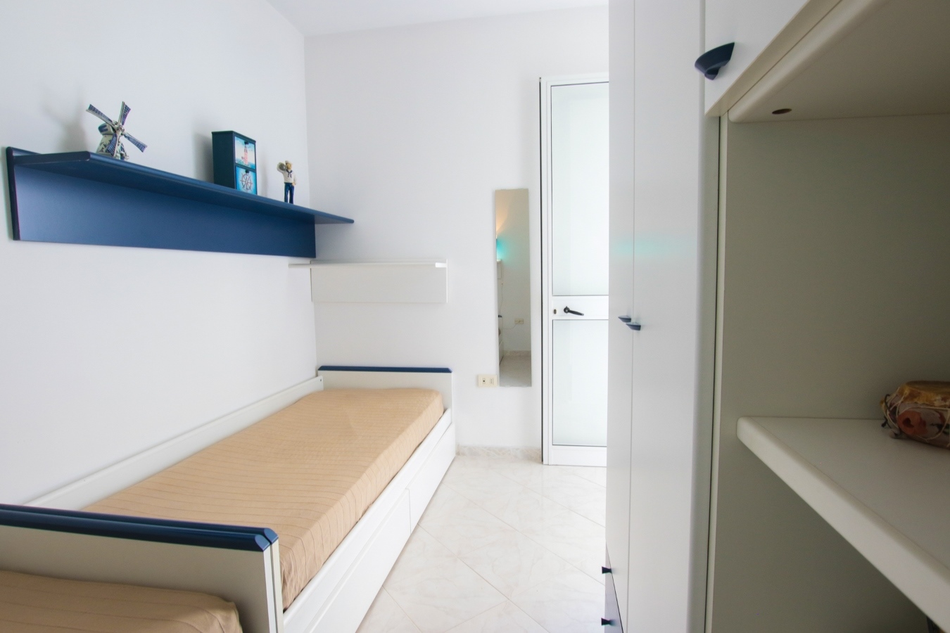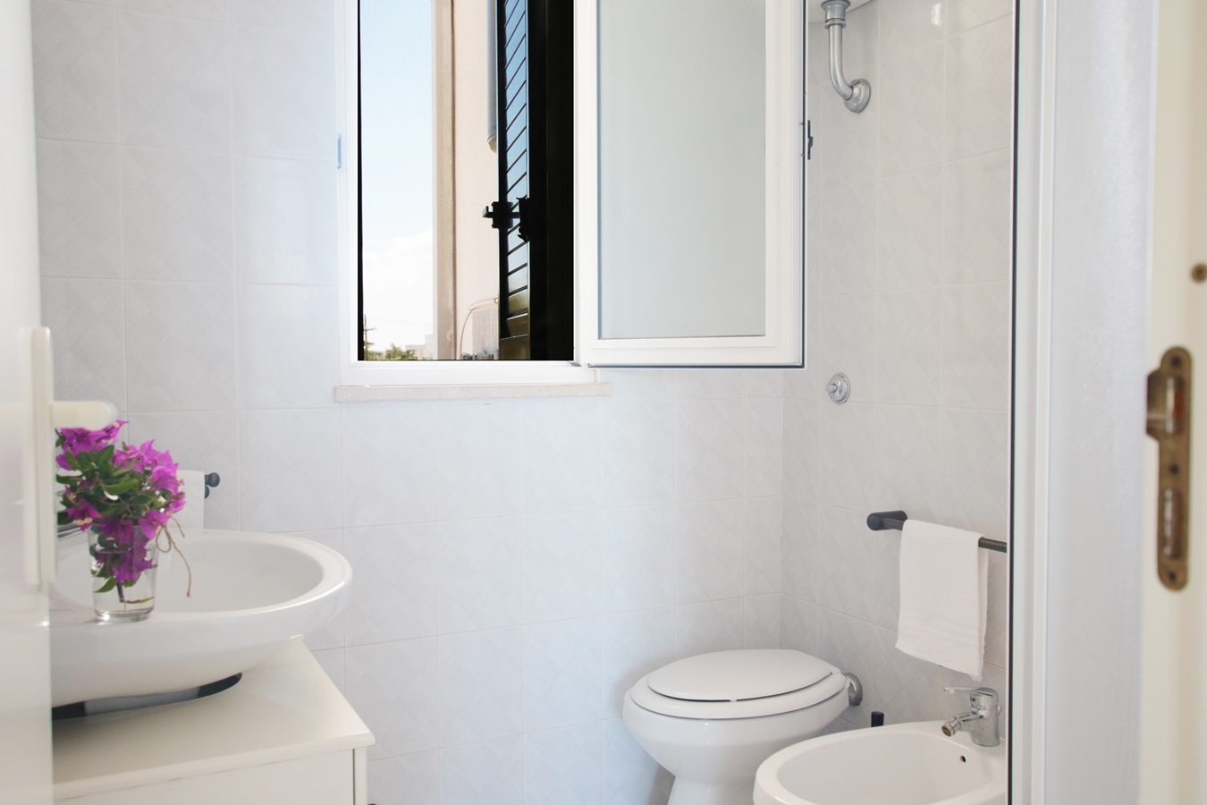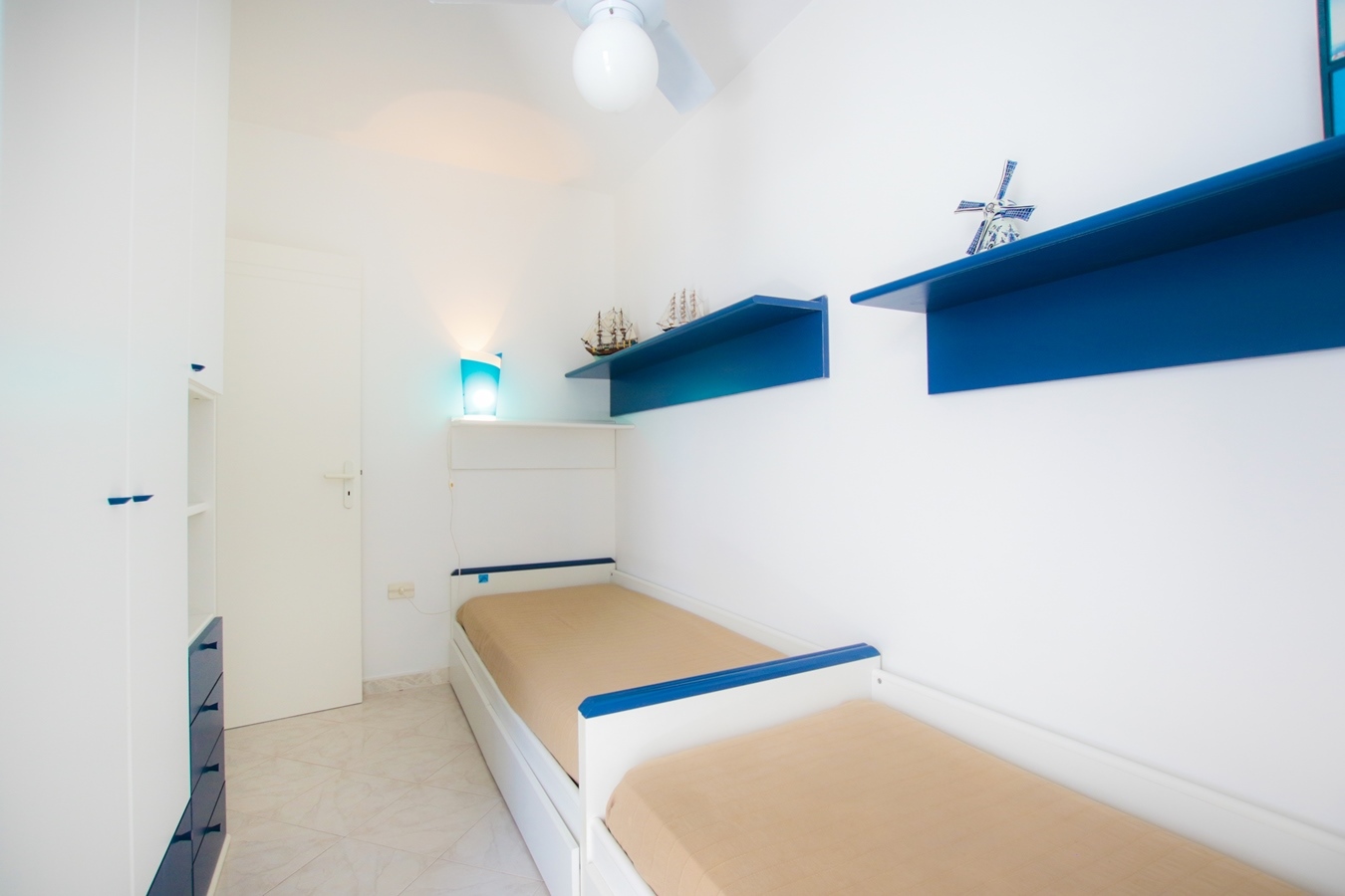 Al primo piano: 1 camera matrimoniale climatizzata con 1 balcone, 1 camera con 2 letti singoli con 1 ventola a soffitto e 1 balcone, 1 bagno con box doccia.