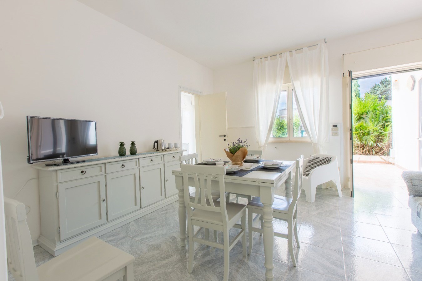 Villa Nettuno è una villa in affitto in Puglia, ideale per famiglie con animali grazie anche al suo giardino recintato di 500 mq. Si trova nella tranquilla marina di Pantanagianni a soli 150 m dalle spiagge lunghe e sabbiose. Offre cinque posti letto, 2 camere matrimoniali, una cucina moderna e all’esterno due verande ombreggiate con affaccio sul giardino.
