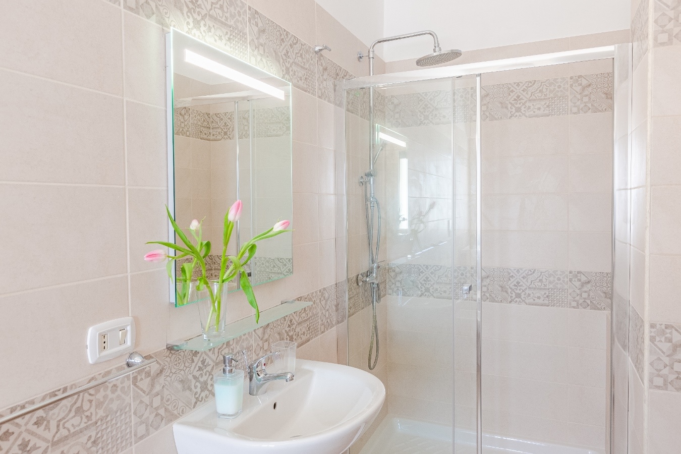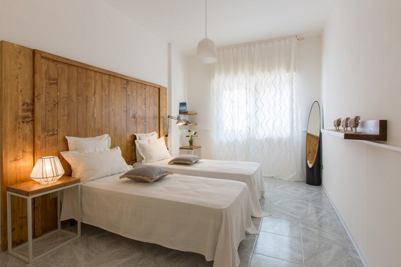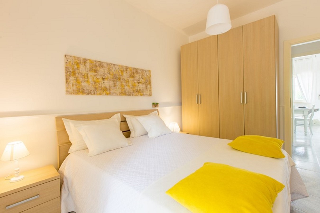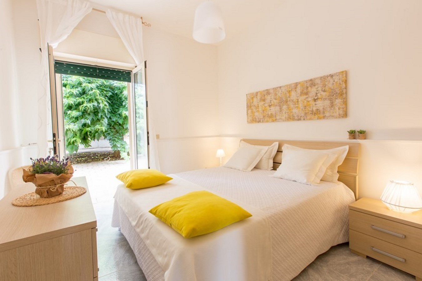 – 1 camera matrimoniale con porta di accesso al giardino,