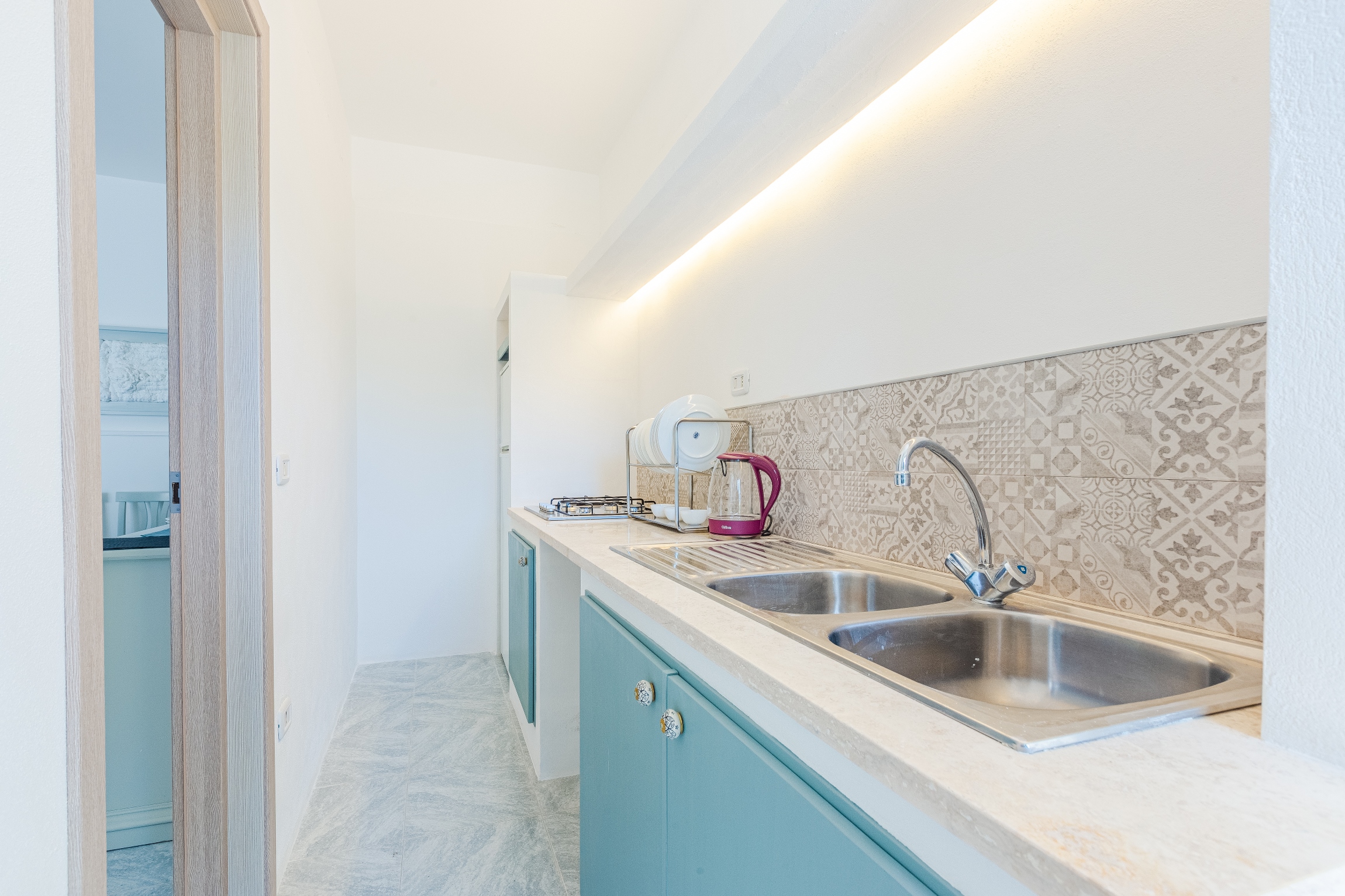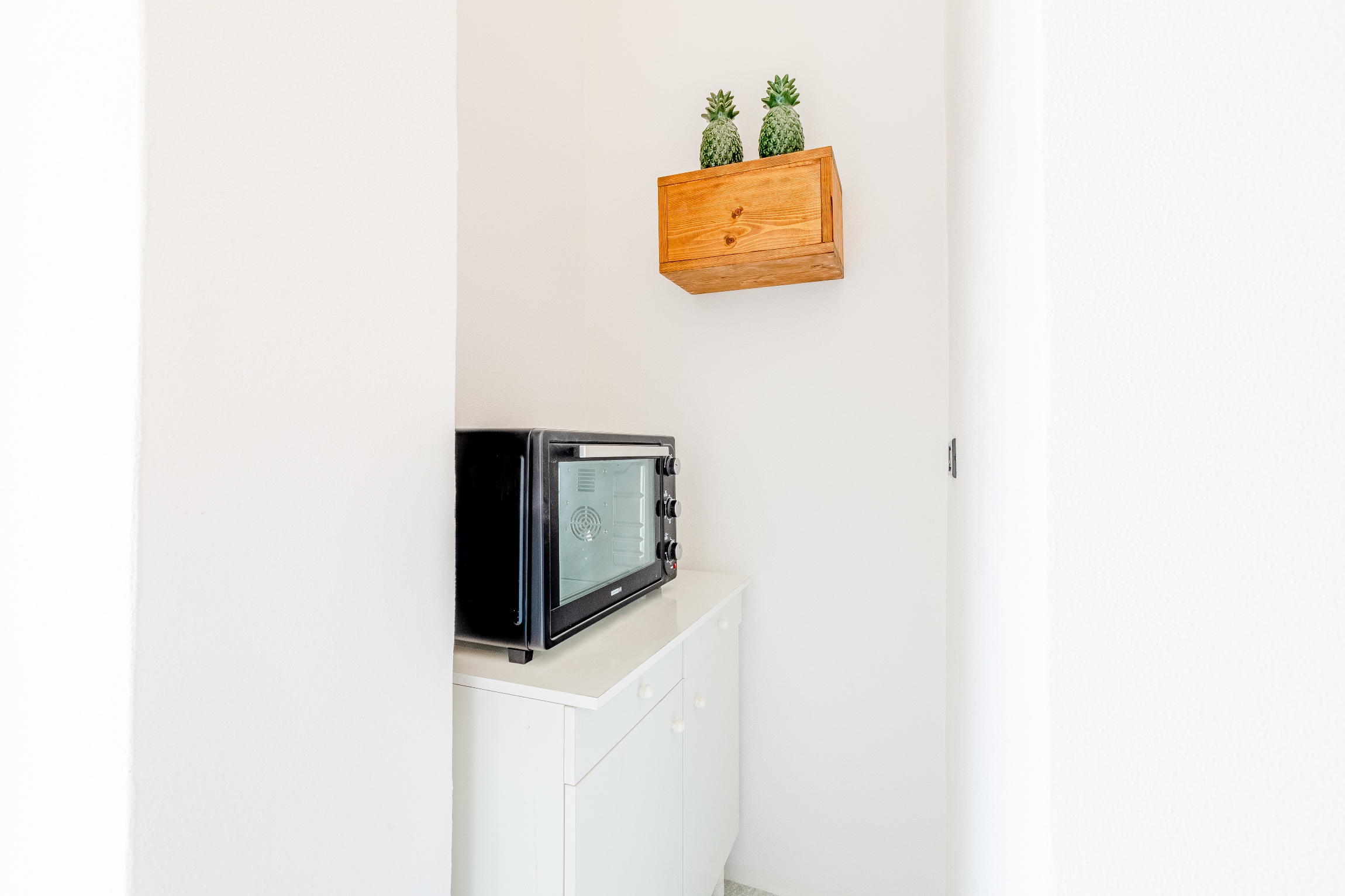 La cucina è attrezzata con forno, microonde e lavastoviglie.
