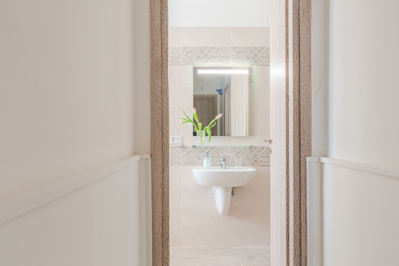 Aria condizionata: 1 potente climatizzatore nel disimpegno rinfresca la casa intera.