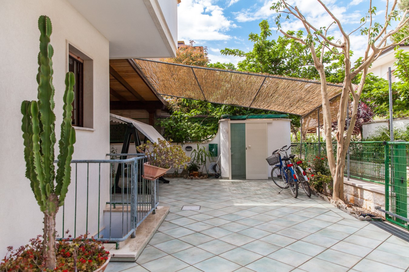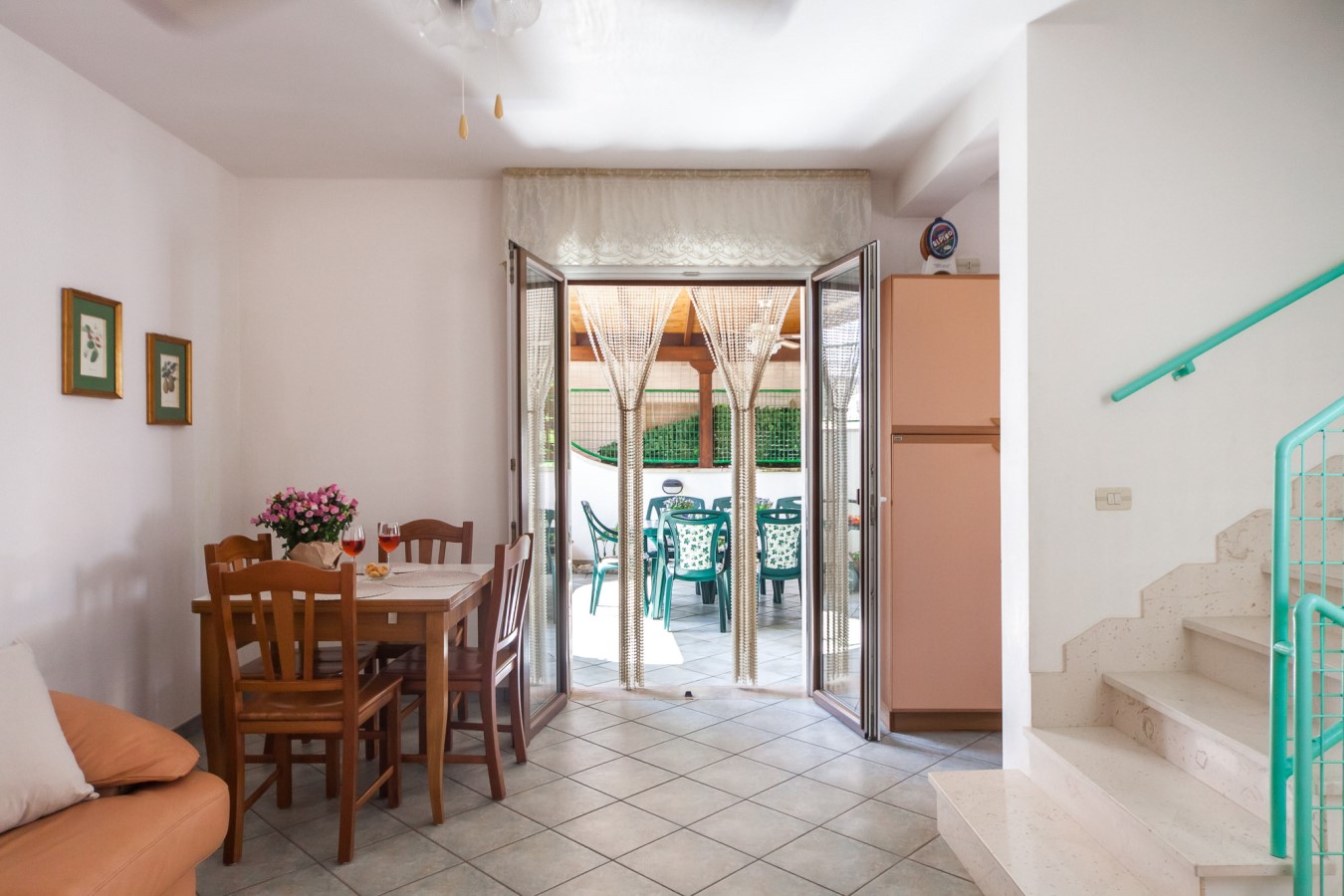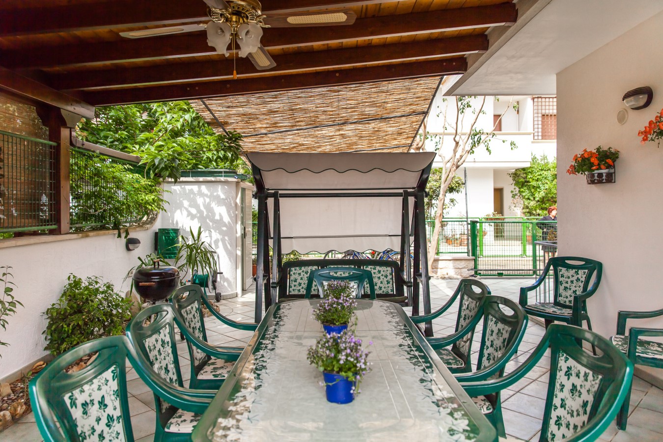 n.1 toilet, n.1 doccia dopo spiaggia, giardino, veranda con n.1 ventola a soffitto, mobili giardino, dondolo.