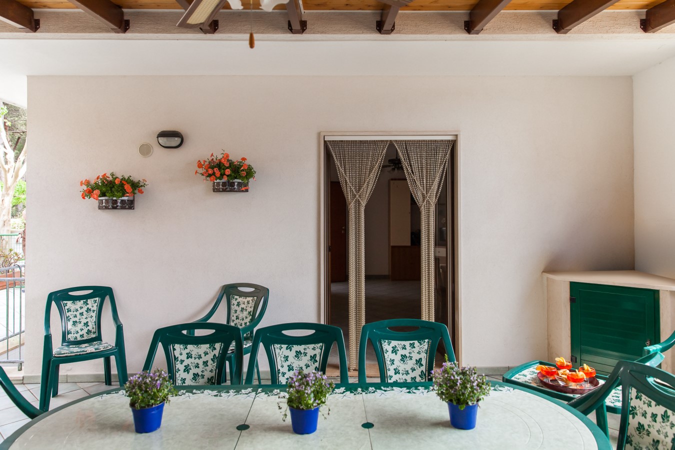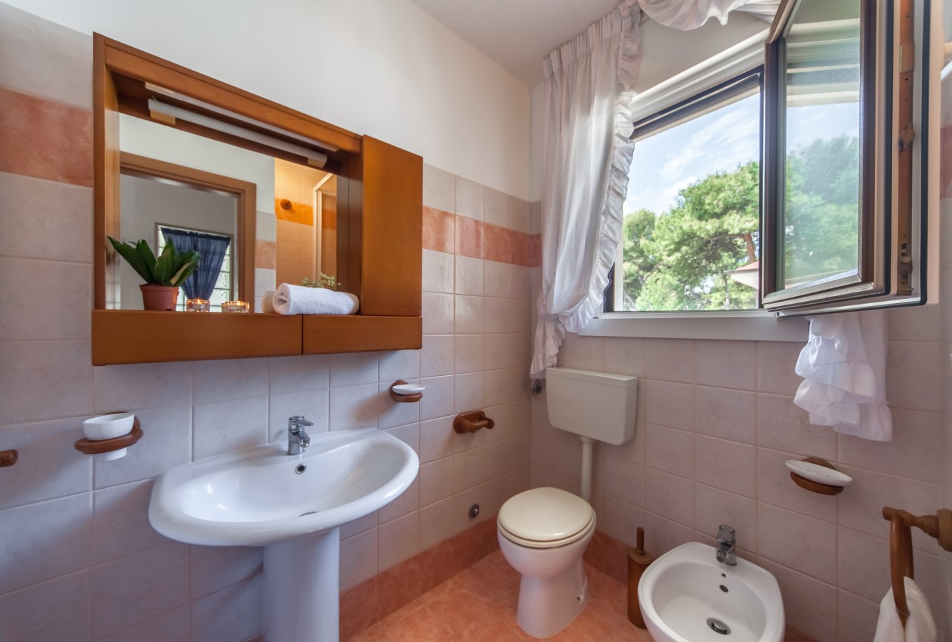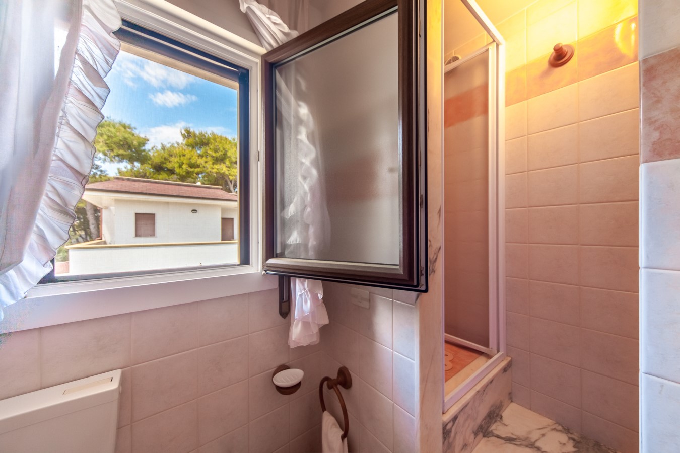 n.1 toilet, n.1 doccia dopo spiaggia, giardino, veranda con n.1 ventola a soffitto, mobili giardino, dondolo.