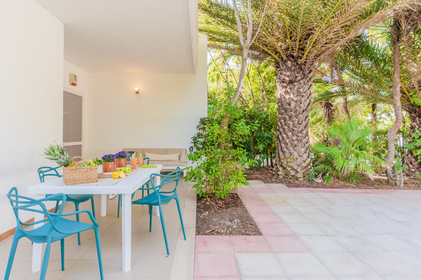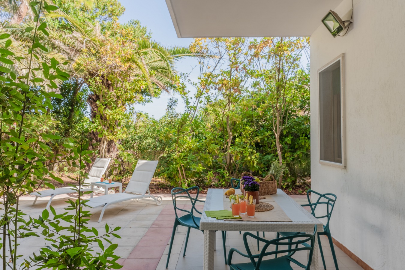 Tante possibilità in giardino, sdraiarsi al sole, pranzare in veranda o rilassarsi leggendo un libro all’ombra.